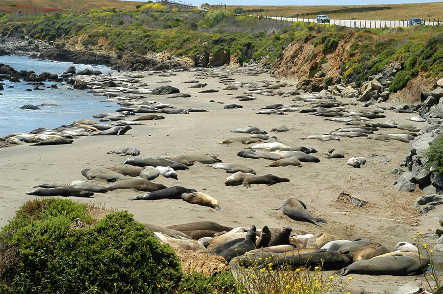Las dos últimas etapas transcurrirían por la Pacific Coast Highway, la Nacional 1 que va bordeando toda la costa transportándonos entre playas, acantilados y frondosos bosques, carretera que además de muy transitada por los motoristas de la zona, ofrece un gran número de miradores en los que es fácil ver leones marinos, gaviotas, pelicanos, ardillas y demás fauna que se acerca, en muchos casos, para que les des de comer.