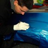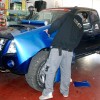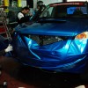 En las fotos se puede apreciar todos los pasos del proceso completo de vinilado, aunque lo más espectacular es el acabado final; el vinilo escogido, en un tono azul diferente al original del coche, tiene un “metalizado” que ya quisieran muchas pinturas y a simple vista, y si no dices nada, no se aprecia en absoluto que lo que recubre la carrocería de tu coche es vinilo en vez de pintura. De hecho, ahora, cuando ya han pasado varios meses de que lo vinilé, me siguen preguntando si he cambiado de coche o si lo he pintado; hasta que lo explicas nadie se imagina que lo que está viendo es una lámina de vinilo.