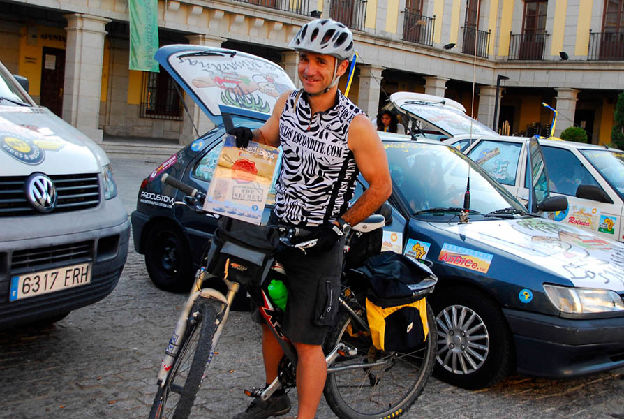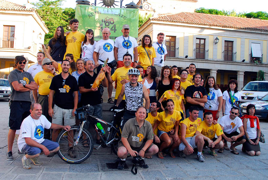 Y casi sin darnos cuenta, el día de la salida llegó, y el viernes 30 de julio, uno a uno, todos los participantes fueron llegando a la Plaza Mayor de Brunete, donde fuimos citados por la organización. Saludos a viejos conocidos, presentaciones de “gentes”, que sin saberlo y en tan solo unos días se habrían convertido en amigos de toda la vida, y la primera cachondada de la organización, el libro de ruta (secreto hasta ese mismo día de partida), que te entregaban en la mesa de organización, venía con un candado cuya llave había que encontrar en algún lugar del bar donde, posteriormente, nos prepararían una estupenda paella para cenar.