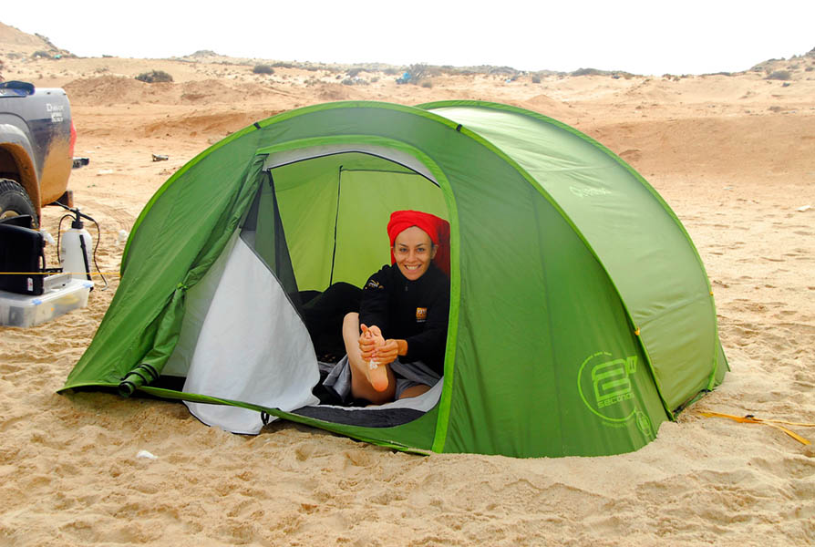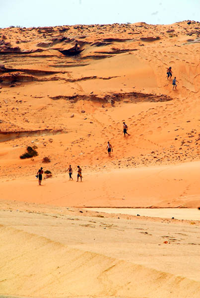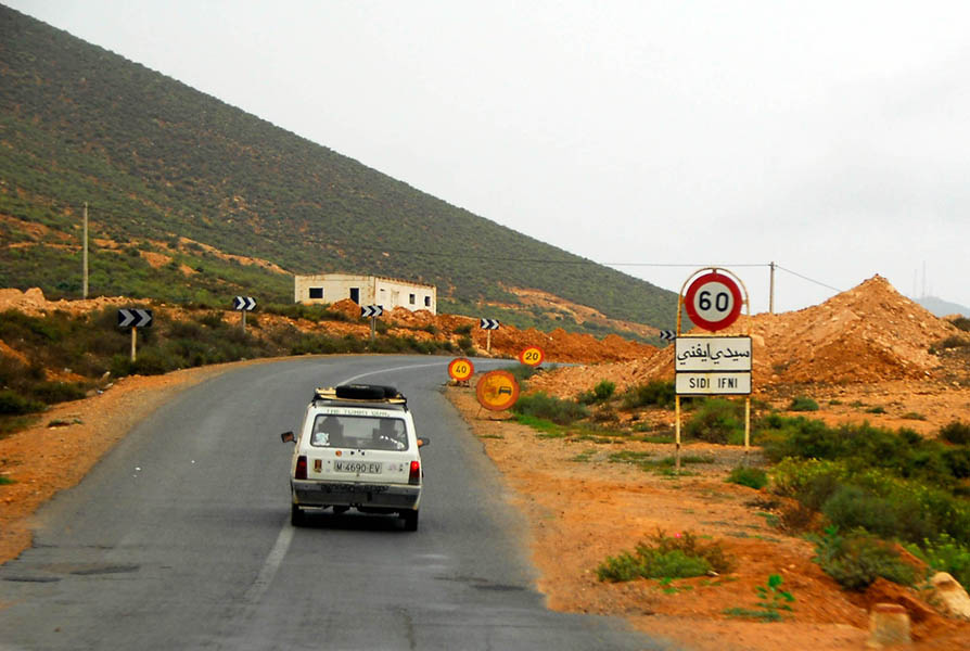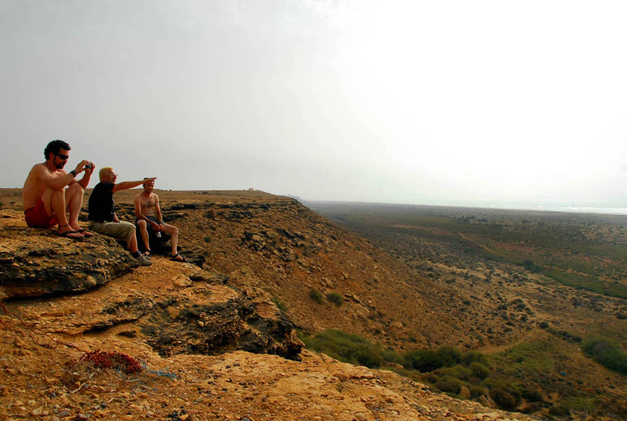 Agadir, Sidi Ifni, Tan-tan, Tarfaya, El Aioun, Dakhla (Antiguo Villa Cisneros), y en general toda la costa marroquí y del Sahara Occidental, nos permitió disfrutar de impresionantes paisajes en los que las playas desiertas se mezclaban con los acantilados y estos con las dunas que se “comían” literalmente la carretera en algunos tramos. La tienda de campaña, que echamos “por si acaso”, pensando en que algún día dormiríamos en ella, se convirtió en nuestro único hotel durante los 13 días que duró nuestro viaje hasta la frontera de Mauritania, donde de nuevo, todo el grupo tenía que reunirse para cruzar juntos.