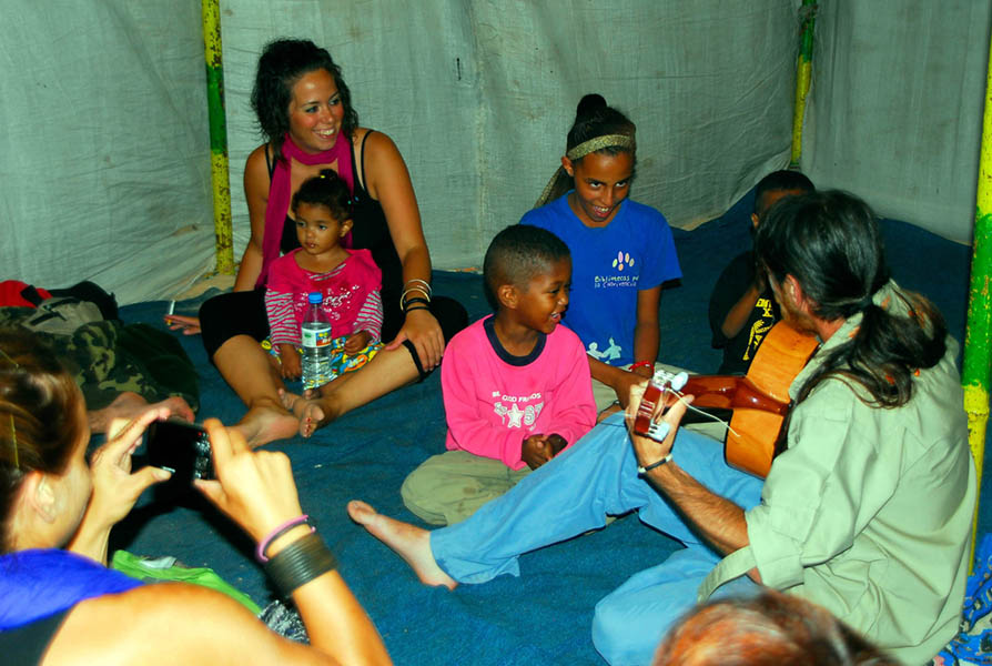Finalmente toda la caravana pudo seguir hasta el orfanato de Nouadhibou (tras tener que volver a parar y pasar dos controles más), allí vimos por primera vez a los niños del orfanato y nos tomamos un aperitivo que nos habían preparado (así como un perfecto aparcamiento para todos los coches hecho con piedras). Después nos fuimos a buscar un apartamento para dormir en cama por primera vez en 13 días. Nos sorprendió gratamente. El precio eran 10.000 “pelotillos” (nombre oficial de cualquier moneda que no sea el € durante cualquier viaje) por noche, es decir 8 euros por cabeza, en un apartamento para cuatro personas (salón con sofas y TV, cocina con frigo, fogones, fregadero y cacharros de cocina, cuarto de baño con ducha y agua caliente, una habitación con cama extragrande y otra habitación con 4 camas árabes), donde pasamos los dos días que estuvimos en Nouadhibou.