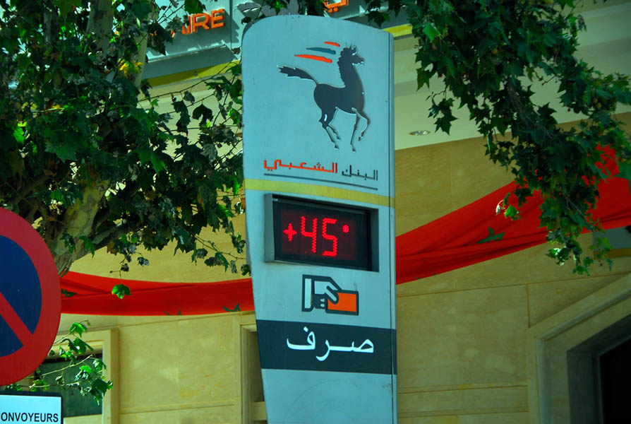 Dirección hacia Rabat, buscando las más templadas temperaturas de la costa, paramos a comer en Khemisset, cuando salimos son las 16:30, hacemos una foto de un termómetro que marca 45º a la sombra (el nuestro marca “solo” 42º). Según nos vamos acercando a Rabat el termómetro va bajando hasta que al llegar a Rabat se sitúa en unos agradables 28-30º. Atravesamos Rabat siguiendo la carretera más cercana a la costa dirección sur, buscando un sitio para dormir. Encontramos un sitio con playa vigilada ¡perfecto! Hasta que un italiano nos dice que no se puede acampar, que te echan, ¡nuestro gozo en un pozo!, seguimos hacia Casablanca, se nos echa la noche encima hasta que en una urbanización de lujo encontramos un acceso a la playa, entramos y montamos la tienda sigilosamente.