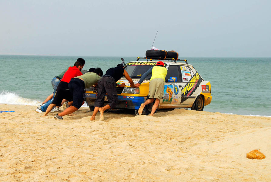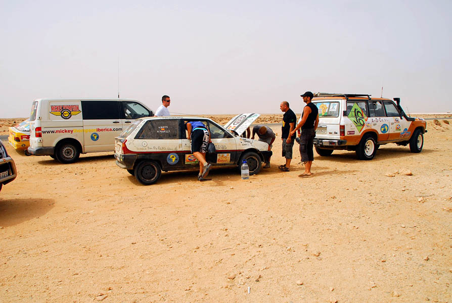 ¿Y por qué?. Por un fin solidario y porque el cuerpo te pide aventura y competición. Porque estás decidido a abrir camino y a abrir tu mente; porque el apartamento de la playa puede esperar a otro verano… unas buenas razones que nos convencieron a un grupo de casi 50 personas y que llevaría a los participantes en la categoría bólidos (también había “Biciclistas” y “Mochileros”), a participar con un “viejo cacharro” (un coche con más de 10 años), para una vez en Nouadhibou, donarlo y poder contribuir con el dinero de su venta a hacer la vida un poco más fácil a personas realmente necesitadas. “Si eres de los que quieren ayudar pero tampoco andas sobrado de dinero; si quieres conocer y conocerte… éste es tu rally”. Terminaba esta invitación-declaración de intenciones.