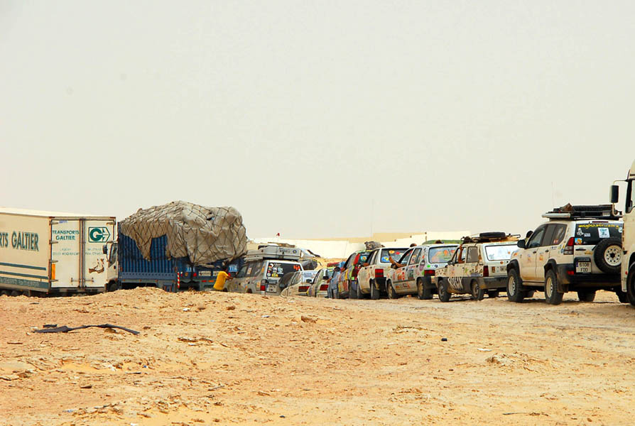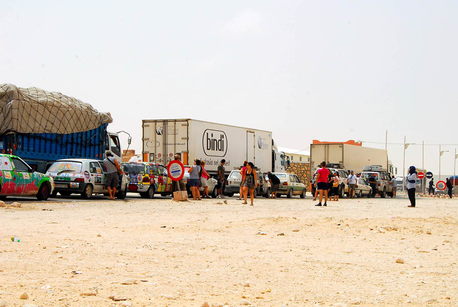Antes de las 12 del mediodía, la caravana con todos los coches estaba parada delante de la frontera marroquí, cuyos controles, un total de 5, tardamos unas dos horas en pasar, algo que nos cabrea, pero que no sería nada con las más de 7 horas que tardaríamos en pasar el control Mauritano, donde se nos hizo de noche.