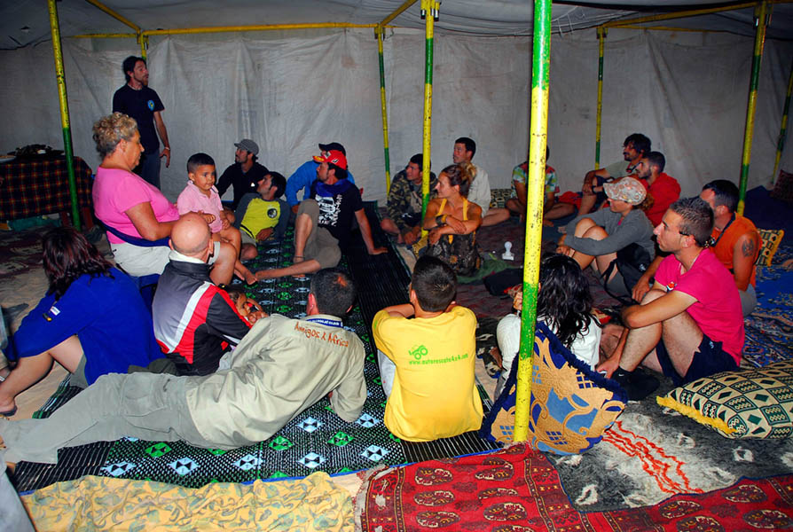 Al día siguiente tras recoger el que sería el primer campamento, desayuno y salida para todos los participantes a las 8,30 de la mañana. Rumbo a Algeciras, los ocupantes de los coches sin aire acondicionado lo pasaron realmente mal, con unas temperaturas que pasaron en muchas ocasiones de los 40º. Al llegar al puerto de Algeciras (y como es 31 de julio, operación “paso del estrecho”) hay un atasco monumental para embarcar, con suerte al final logramos juntarnos 8 coches que hicimos el trayecto de barco juntos. Tras desembarcar, la caravana se dividió, quedándose cuatro coches en un cuarto alquilado junto a la playa y otros cuatro de acampada unos Km. más adelante.