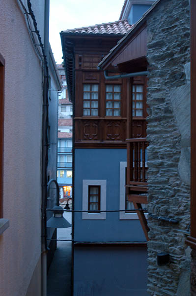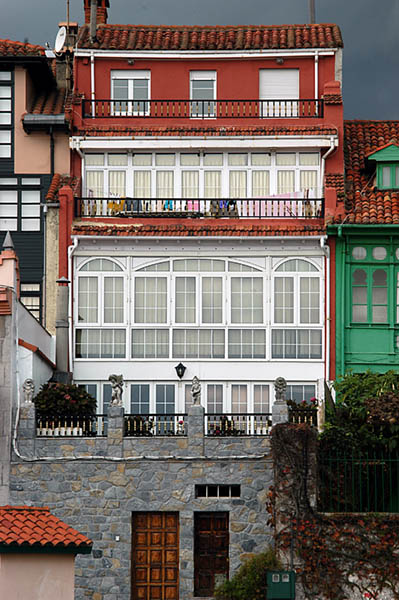 La palabra Cudillero tiene su origen en “codo” o “codillo”, debido a la especial forma de la villa, de casitas dispuestas escalonadamente, a modo de anfiteatro, sobre el escarpado acantilado por el que labró su cauce el río Piñera, que discurriendo bajo la calle principal, desagua al indómito mar Cantábrico. Se mantienen notables exponentes de la casa pixueta tradicional, adaptada ésta a las necesidades de las familias marineras. Se trata de humildes viviendas, la mayor parte de ellas del siglo XIX, con dos plantas; la baja se reservaba a almacén para los útiles de pesca. Los corredores en Cudillero se encuentran en algunos edificios abiertos a los espacios principales; con frecuencia han sido transformados en cuerpos cerrados salientes, en un afán de aprovechar al máximo el poco espacio habitable.