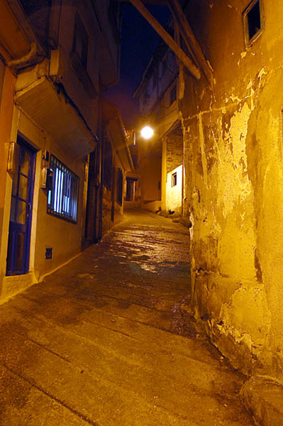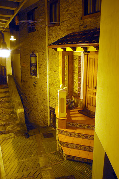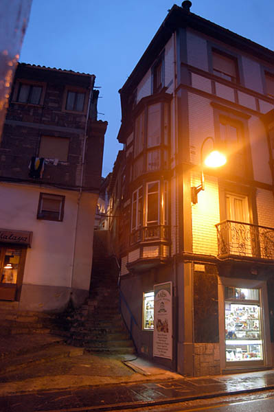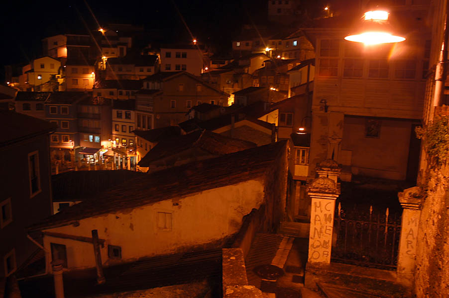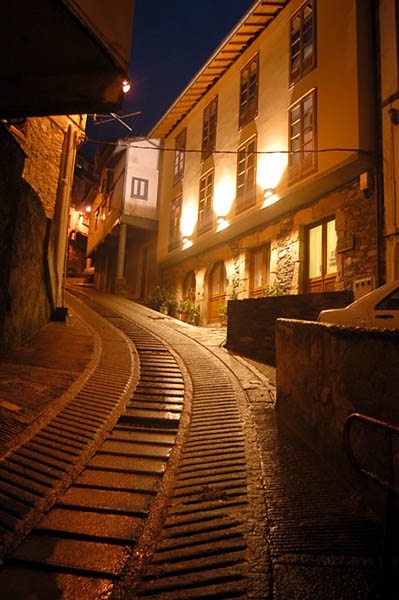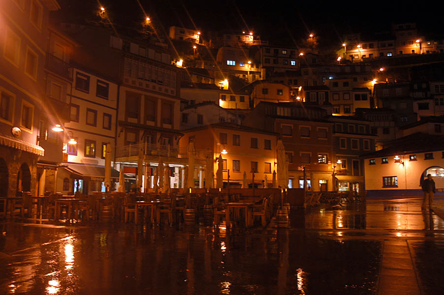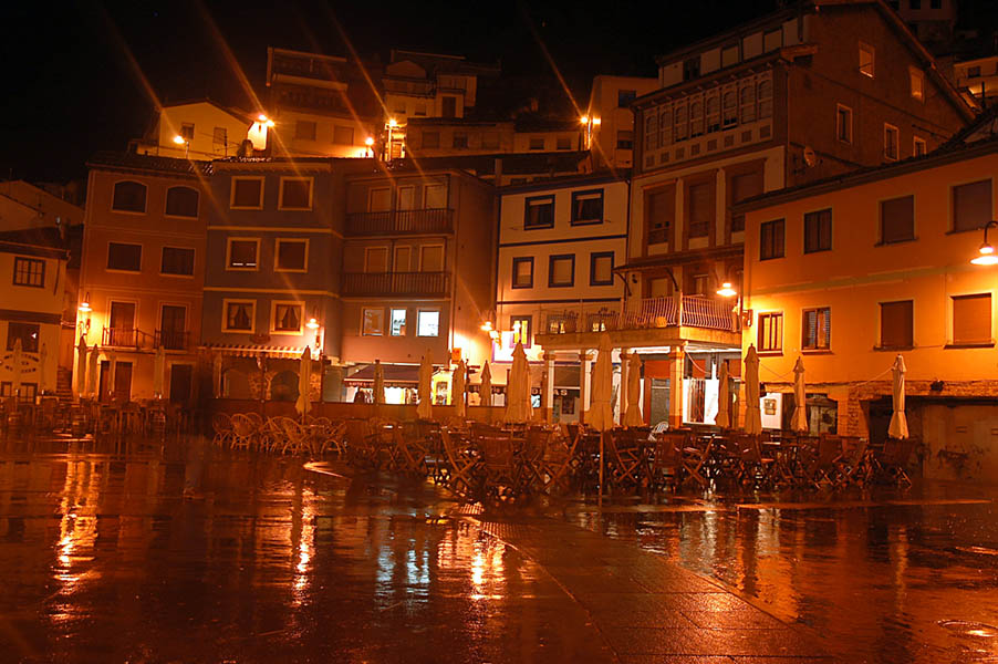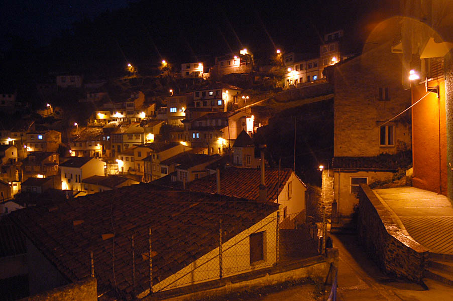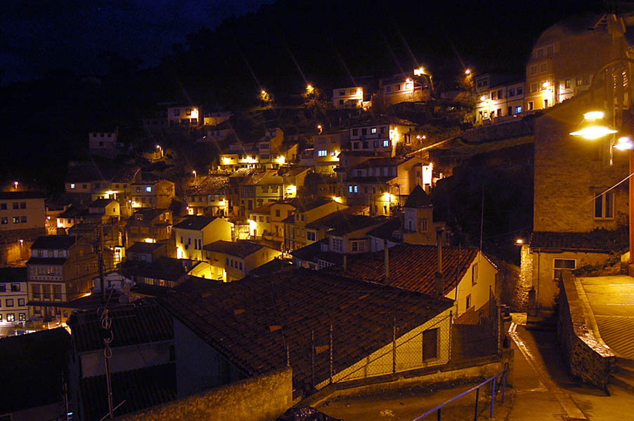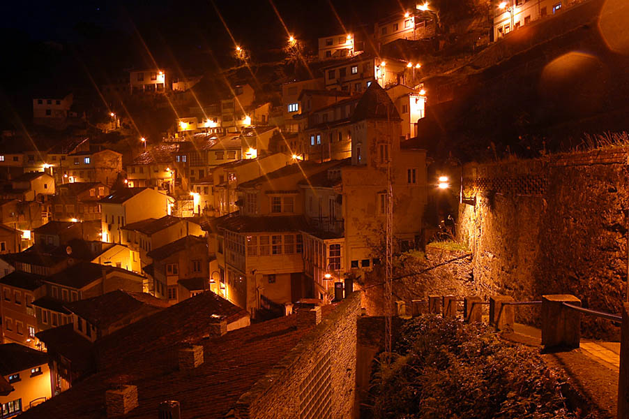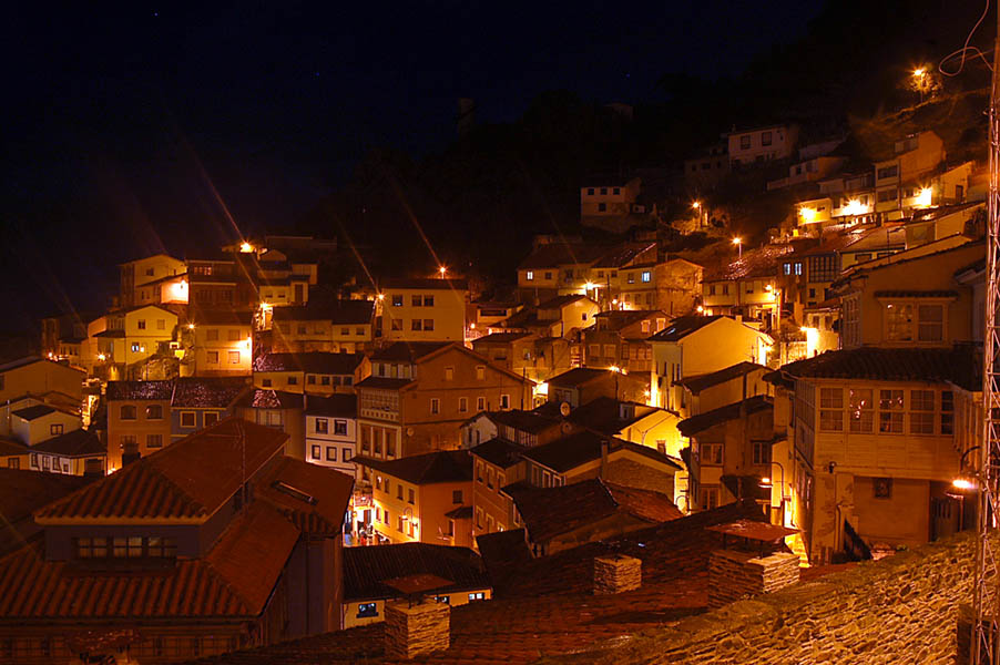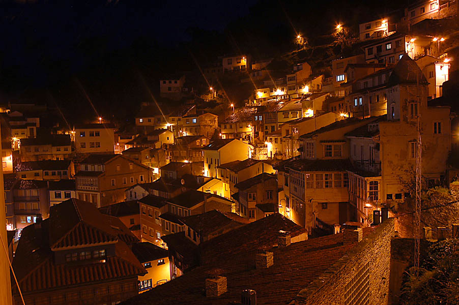 Pero si Cudillero de día es bonito, de noche, con una excelente iluminación, es de una gran belleza y es precisamente en los momentos en que la penumbra empieza a apoderarse del ambiente, y las amarillas luces artificiales de las farolas de la villa empiezan a metamorfosear su silueta, cuando más interesantes se hace el perderse por su complicado entramado de callejuelas, fuertemente empinadas en su gran mayoría, para descubrir a cada esquina un nuevo paisaje o espectacular vista; cuando nos encontremos en su parte más alta, prácticamente toda la parte superior de la villa se convierte en un estupendo mirador que nos deleitará con unas vistas espectaculares.
