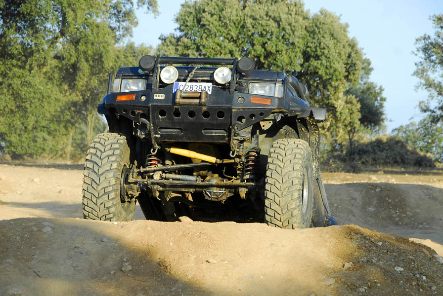 Como se puede ver en las fotos, y dado el espectacular calzado que porta y la no menos impresionante altura libre de la que dispone, vadeos, barro o rocas de gran tamaño no son ningún impedimento para este coche que sortea este tipo de obstáculos con una pasmosa facilidad. Sus largos recorridos de suspensión, también le permiten pasar por todo tipo de desniveles “retorciendo” sus ejes de una espectacular manera sin que la carrocería pierda la horizontalidad.