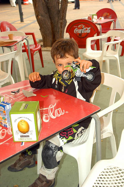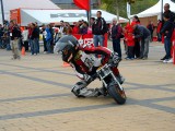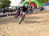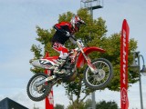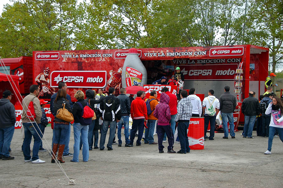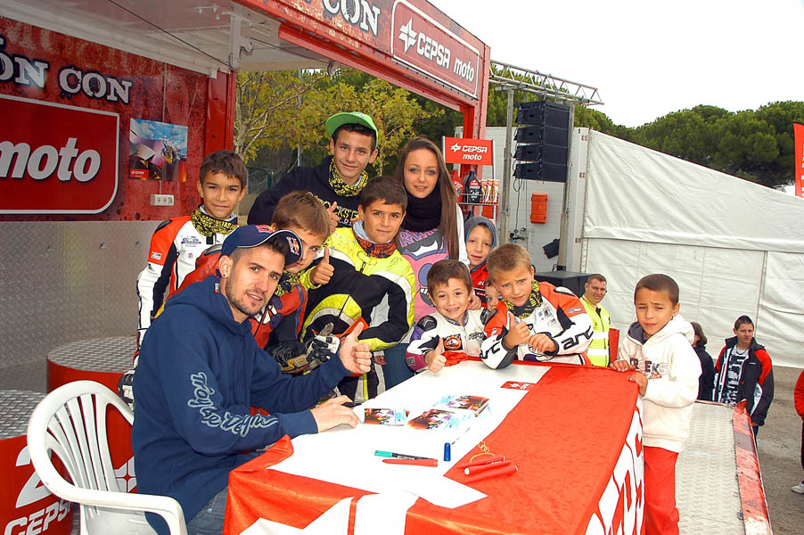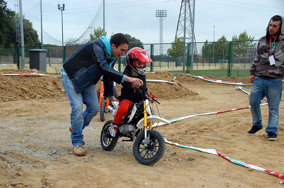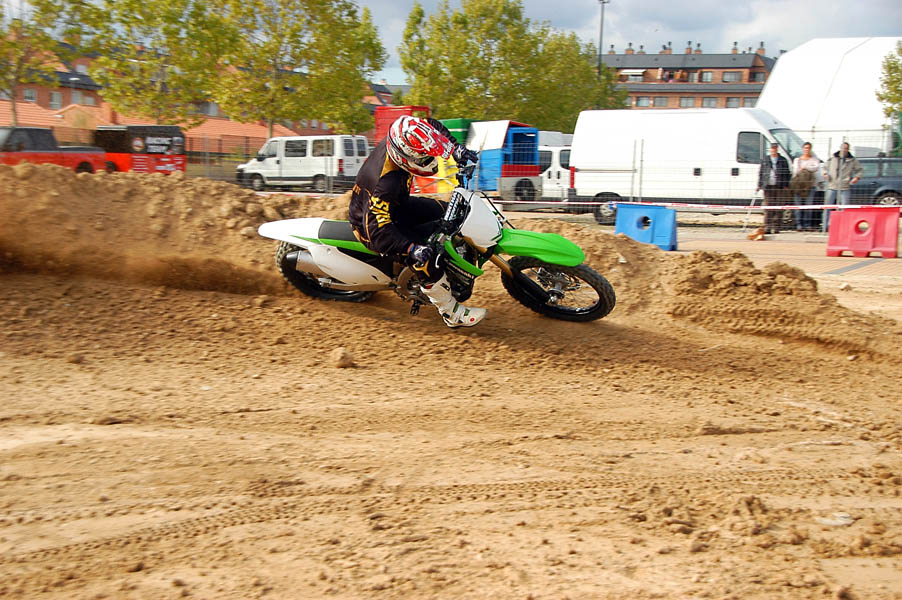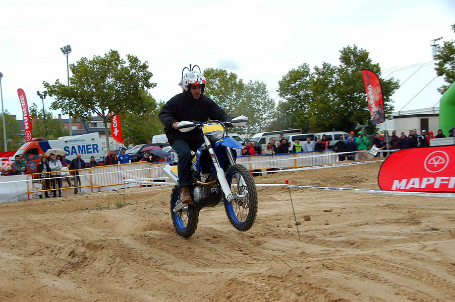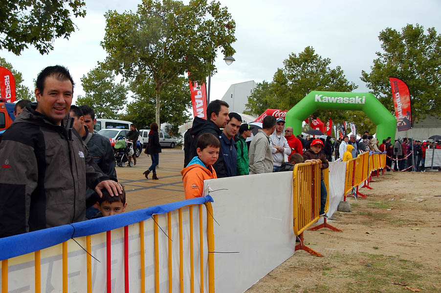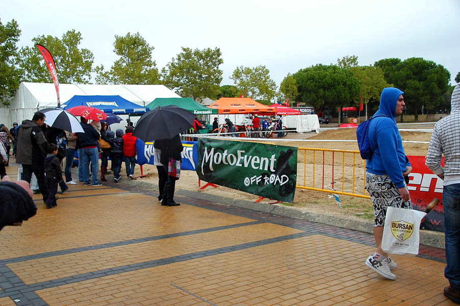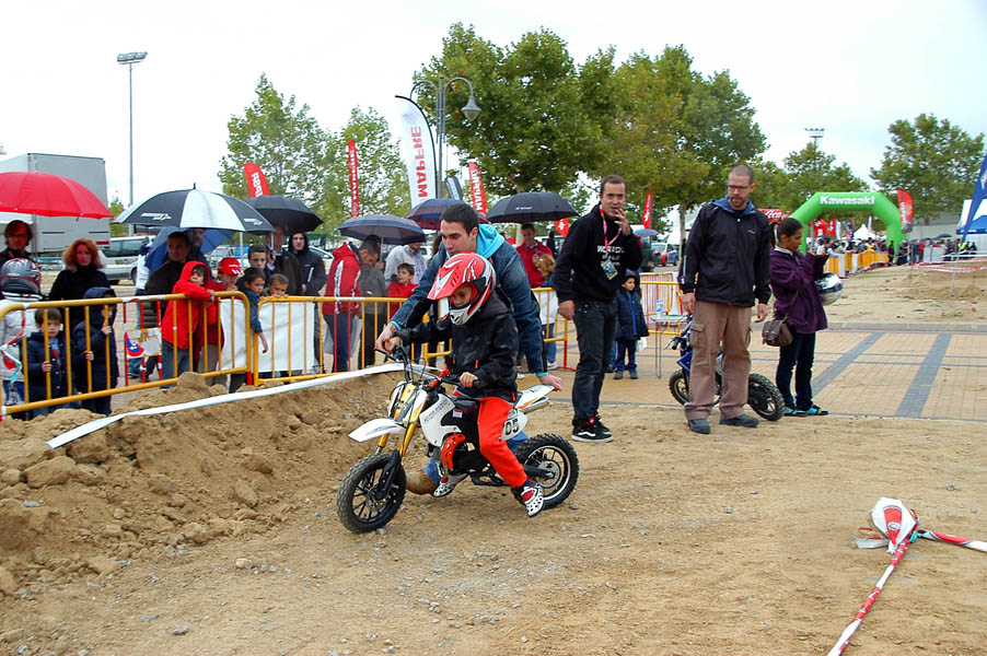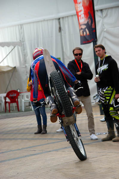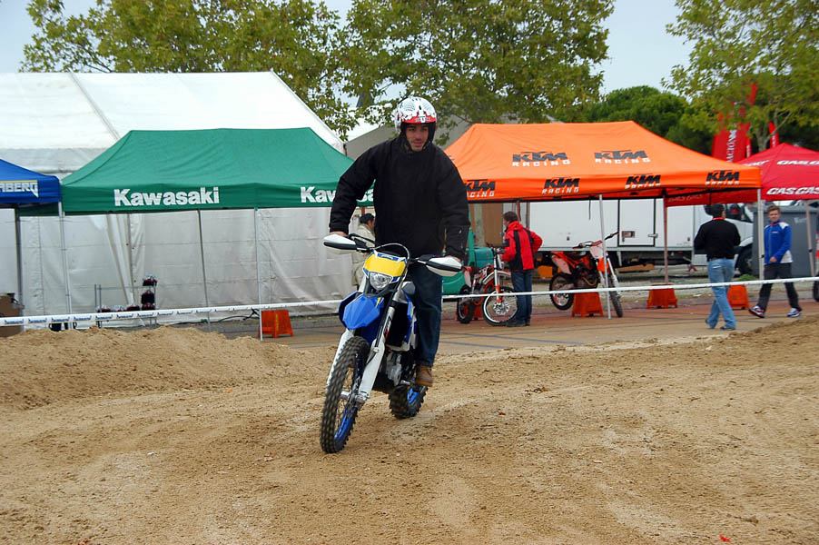 Tras parar la lluvia de nuevo, la gente, que poco a poco seguía llegando al recinto, se animaba a dar vueltas por los stands y a probar las motos que diferentes marcas habían llevado, tanto al circuito de MX como al de circulación. La presencia de Dani Torres, Campeón del Mundo del Red Bull X-Fighters, aunque según el horario estaba previsto para por la tarde, arremolinó a un buen número de aficionados.