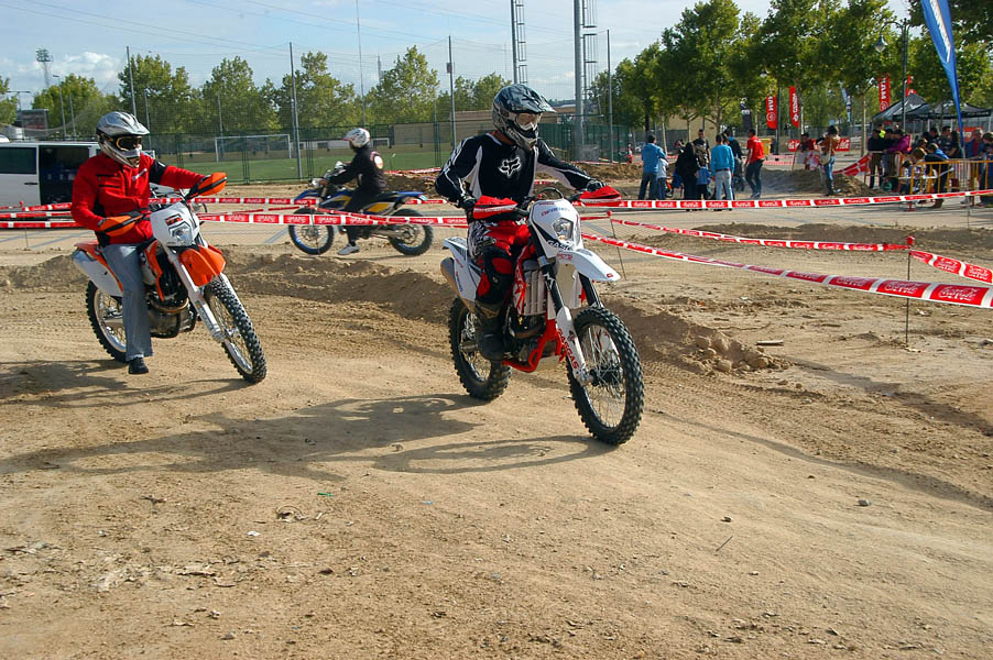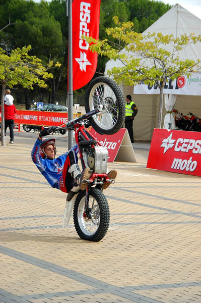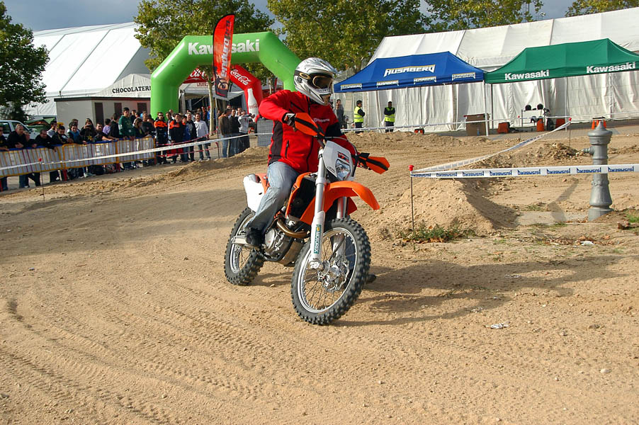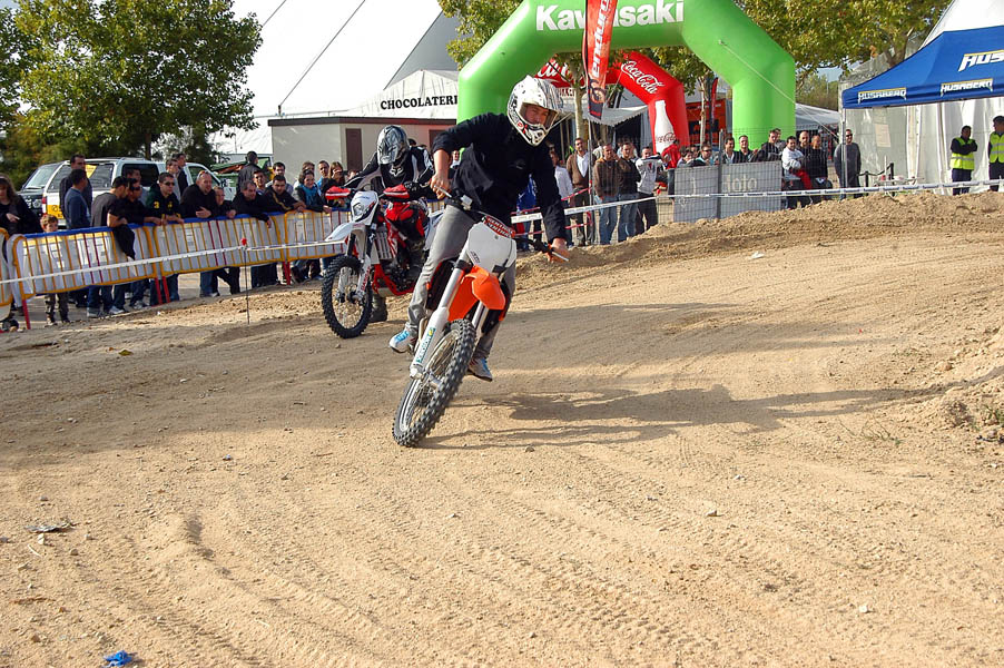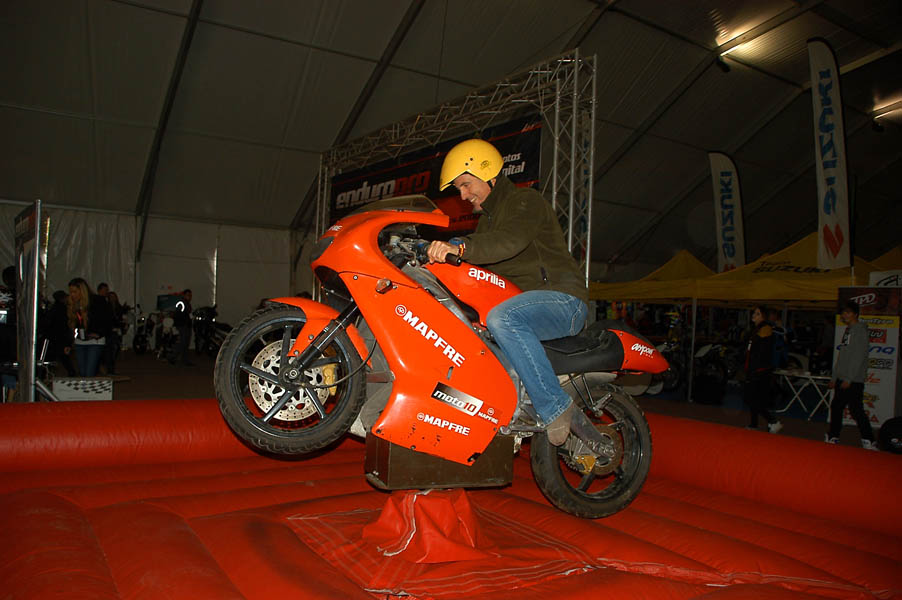 Poco a poco, el día comienza a mejorar y despejarse, lo que unido al cada vez más numeroso publico, empieza a llenar de color y ambiente toda la feria, a lo que colaboraron, y mucho las exhibiciones, que un año más fueron otro de los reclamos de este MotoEvent Off Road. En ellas los mejores deportistas de Trial, MotoCross, Supermotard y Enduro se dieron cita para deleitar con sus maniobras al público de la feria, y como ejemplo citar que entre ellos se encontraban Mario Román (Campeón del Mundo de Enduro) o Alfredo Gómez (Campeón del Mundo de Trial y piloto de Enduro).