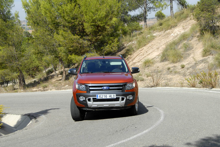 Nada más arrancar nos damos cuenta de una de las principales características de este motor, característica que reflejará sus mayores virtudes y, para algunos supondrá un defecto: la forma de entregar la potencia, tipo tractor. Al principio se tiene la sensación de que el motor “se acaba” pronto, dando la sensación de que los 200 CV que declara son más bien exagerados. Tardas unos km. en darte cuenta de que esto está motivado por dos motivos, el primero, unas cuatro primeras relaciones más bien cortas y pensadas para el campo o arrastrar grandes pesos; el segundo, el que este motor de 3.200 c.c. y cinco cilindros, entrega su potencia máxima a solo 3.000 rpm. Si nos fijamos en el resto de las pick up, todas entregan su máxima potencia en el rango que va de las 3.500 a las 4.000 rpm, lo que da la sensación (tanto real como subjetiva), de que el motor estira más, de que está más tiempo acelerando mientras que en el Ranger, esto se acaba pronto.