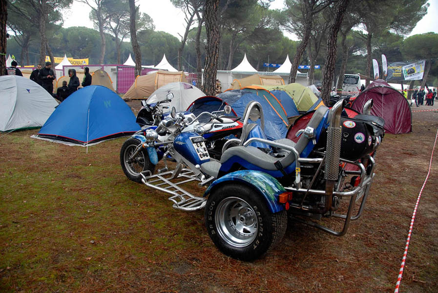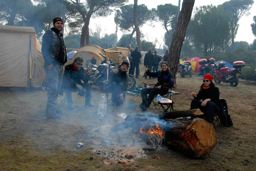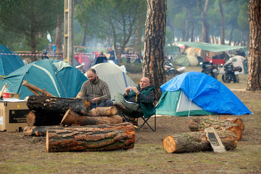 Ya el jueves se podían ver bastantes acampados por el pinar, en un buen porcentaje extranjeros que aprovechan el largo viaje para pasar más días en el recinto de la concentración y así, no perderse nada, y a los ya habituales franceses, portugueses e italianos, se han unido un buen número de moteros alemanes e incluso un albanés.