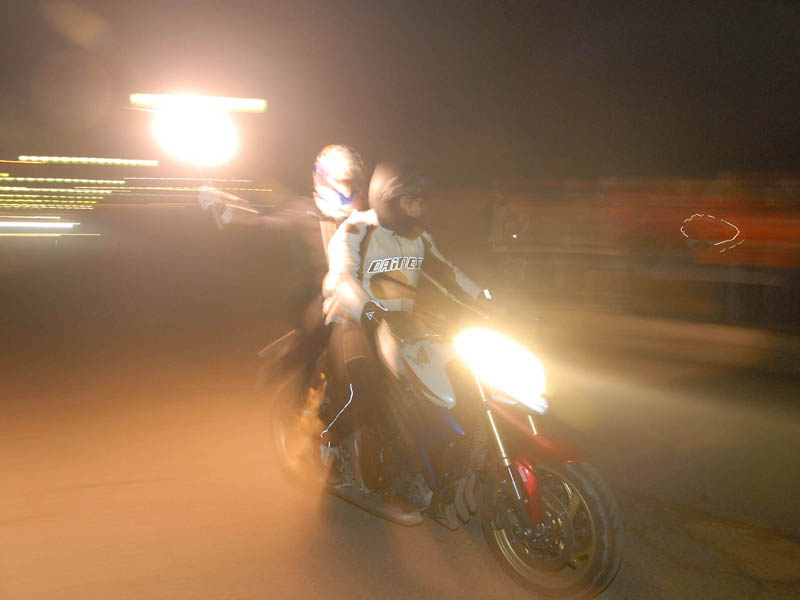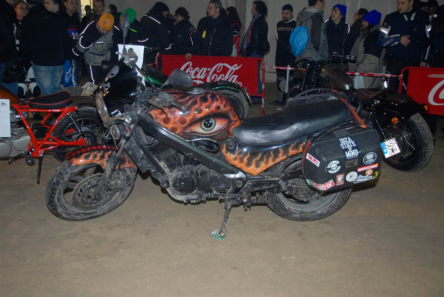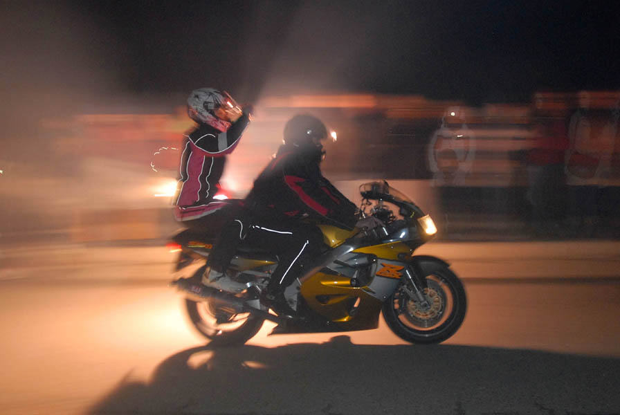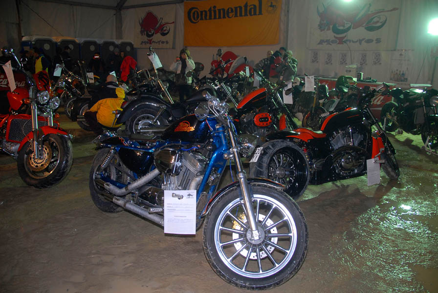De vuelta a la zona de acampada, por la tarde tocaba concurso de grupos de rock además del bike show, con la particularidad de que ambos se celebran a la vez en el interior de la carpa principal. Posteriormente, un pequeño éxodo de motos y caminantes (una de las ventajas de Motauros es que puedes ir andando a Tordesillas), que, unos a participar y otros a ver, se dirigieron hacia el puente sobre el Duero que da entrada a la ciudad para ser testigos tanto de los fuegos de artificio como del desfile de antorchas.