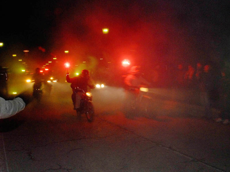 El primero tuvo que ser suspendido a última hora por culpa de un cabo dela Guardia Civilque por sus santos…. suspendió los fuegos de artificio amenazando con una denuncia de 60.000 € tanto al moto club organizador como a la empresa pirotécnica, que con el comprensible “acongojo”, recogió sus bártulos y tomó las de Villa Diego.