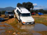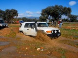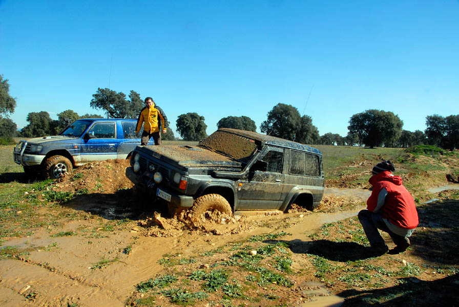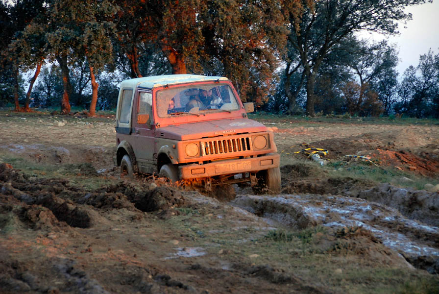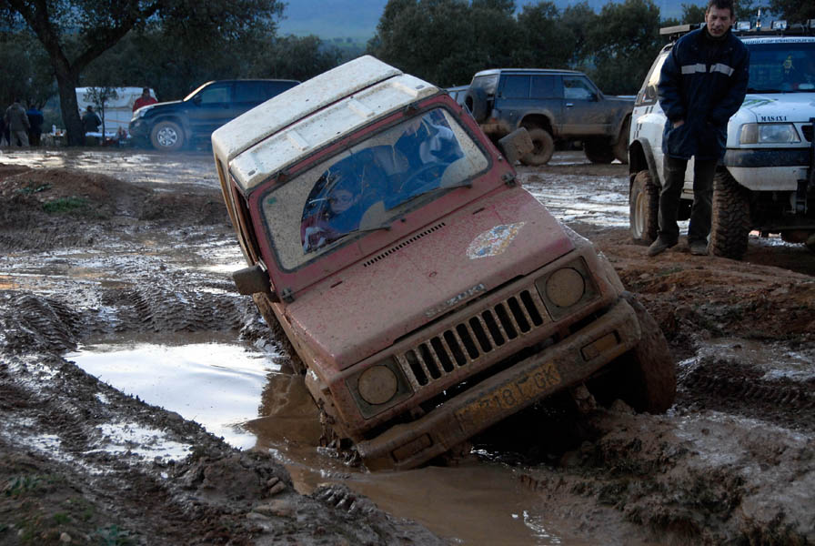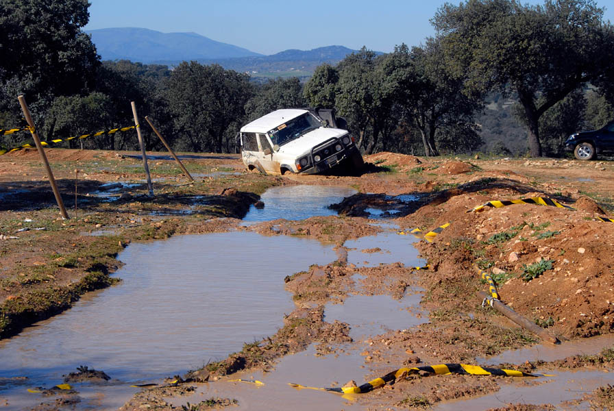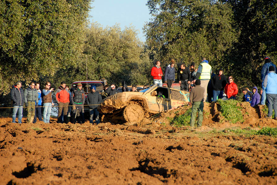 Limitada la movilidad por el interior de la finca, el ambiente en los alrededores del circuito era espectacular, tanto por la cantidad de coches que en todo momento atacaban las zonas, como por la cantidad de espectadores que seguían las evoluciones de estos. El agua que llenaba las pozas por la mañana, se fue convirtiendo, según pasaban las horas en un barro que terminó por cubrir todo el circuito y sus aledaños, proporcionando una nueva “zona” que consistía sencillamente en ser capaz de atravesar el “patatal” en que en buena parte, se había convertido aquello y que provocó la toma de un buen puñado de fotos por parte de todos los asistentes.