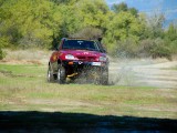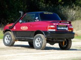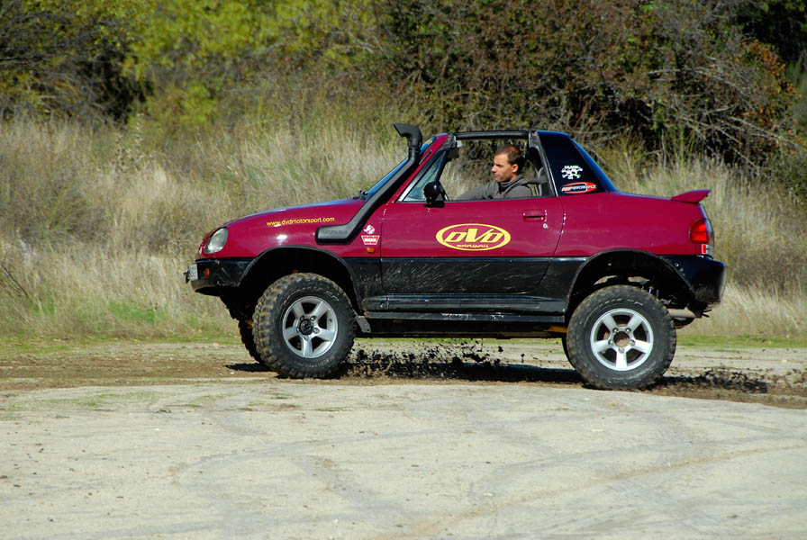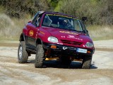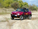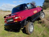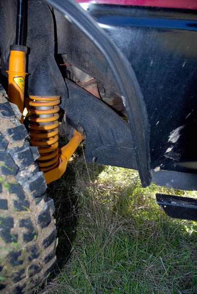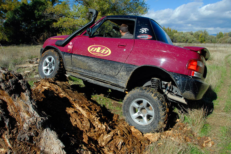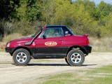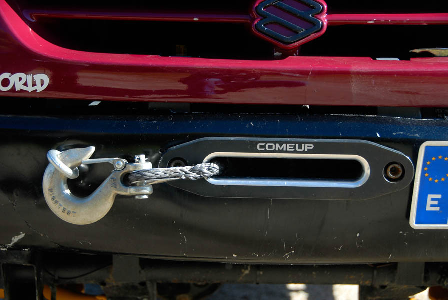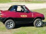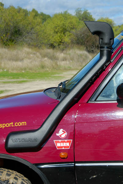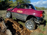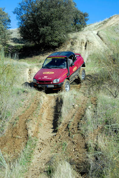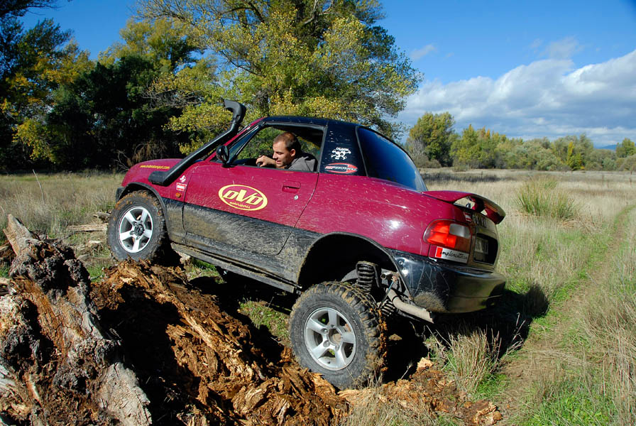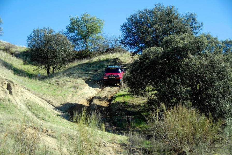 Unos grupos cortos 5´70 se ocuparon de compensar el alargamiento de desarrollos que había generado el cambio de ruedas y de acortar este un 20% más respecto al original, para dotarle de un mayor poder trepador, algo que dado su reducido peso, pudimos comprobar que hace maravillosamente bien. La supresión del catalizador para permitir que el coche respire mejor y estire más, además de la instalación de un Snorkel de Vitara, son las únicas modificaciones que se le han realizado a nivel termodinámico.