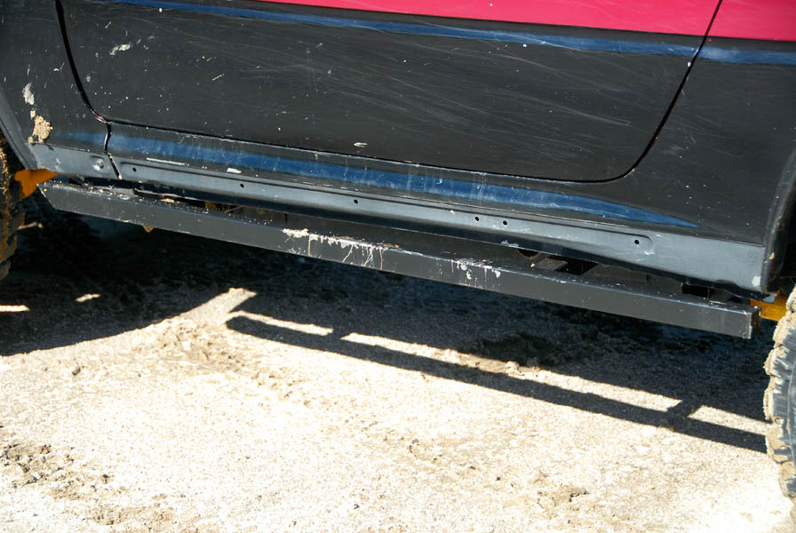 Lo siguiente fue instalarle un protector de transfer que además de bajar esta para que trabaje menos forzada, la protege de los impactos con las piedras; en la misma línea, se le fabricaron unas taloneras artesanales y la carcasa del diferencial delantero se cambió por una de acero, sustituyendo la original de aluminio.