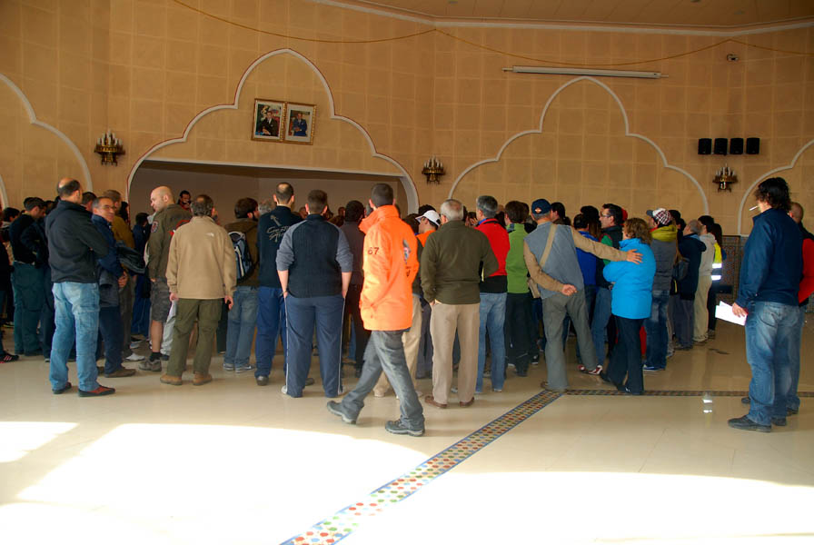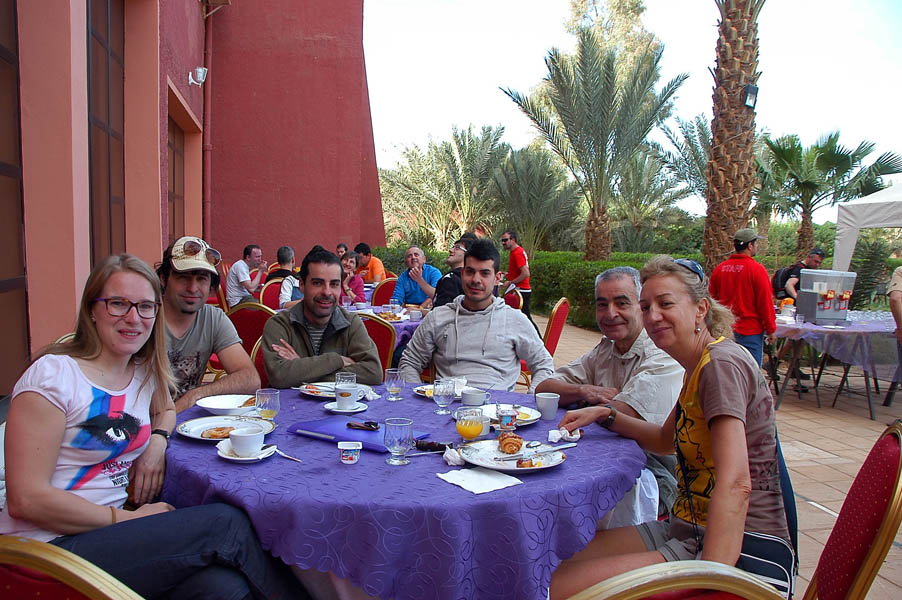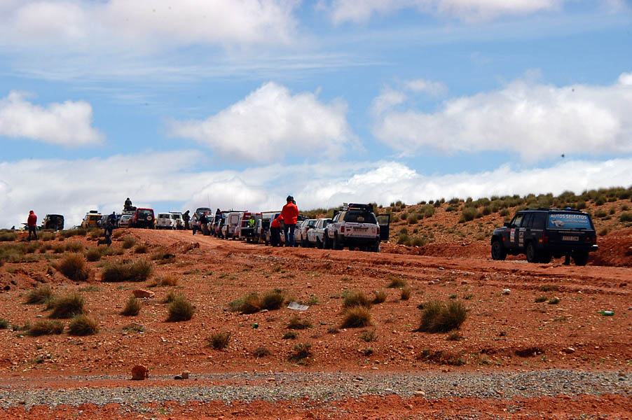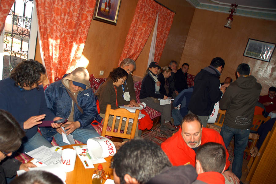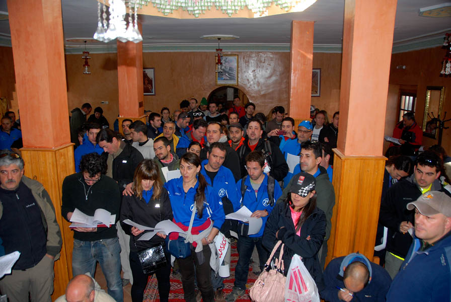 El lunes 2 había curiosidad e incertidumbre en las caras de los participantes antes de realizar el briefing; ese día comenzaba la primera parte de la etapa maratón. Esta tendría un total de 335 Km. de carreteras y 136 km. de pistas a realizar en dos jornadas, la primera que llegaría hasta la ciudad de Errachidia, donde el alojamiento era de libre elección, si bien la organización recomendaba un camping en las proximidades de Errachidia, bien situado para enlazar el segundo día con el segundo tramo de regularidad.
