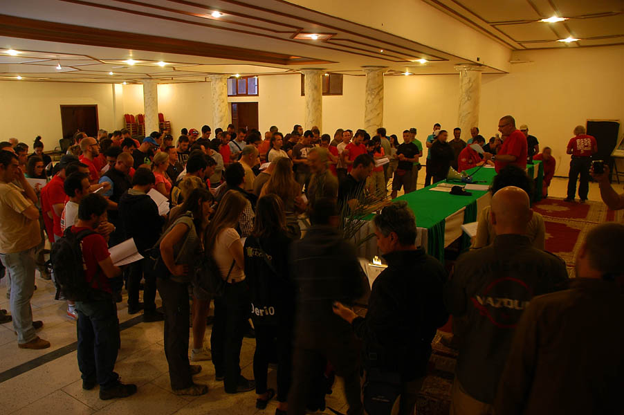 Una tortuosa pero bella carretera llevaría este primer día a los participantes, tras pasar por Tetuán, Chefchaouen, Ouazzane y Moulay-Idriss hasta el hotel Menzeh Dalia en la ciudad de Meknes, donde alrededor de las 10 de la noche ya habían llegado todos y se realizó la primera cena común.