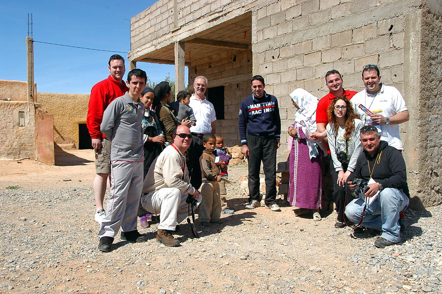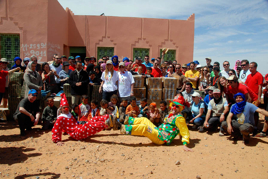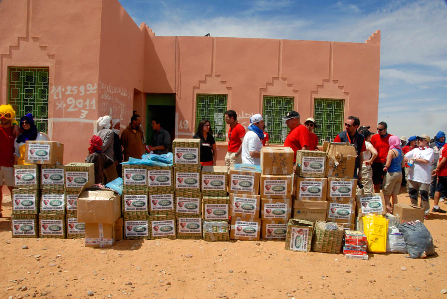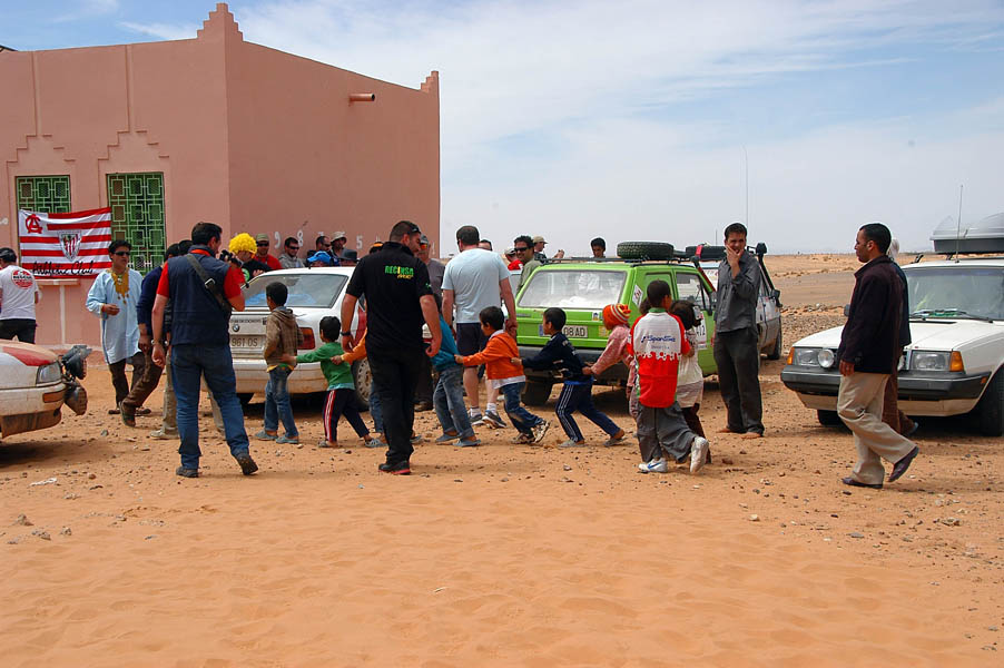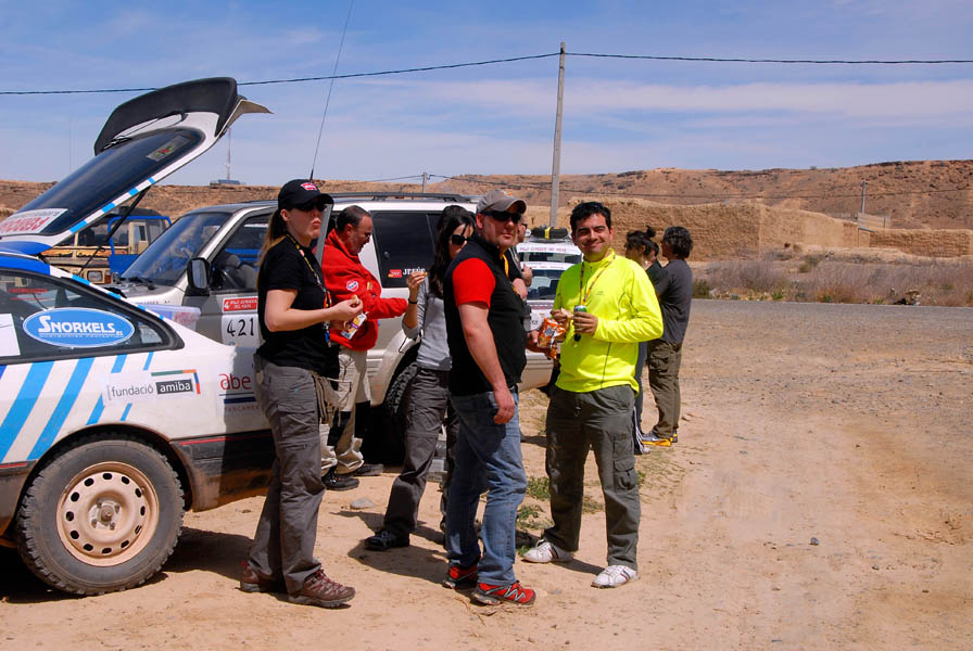 Para acceder a la escuela, situada en lo alto de un cerro, había que pasar por un pequeño paso arenoso, que motivó que algunos turismos se quedaran enganchados, con el consiguiente uso de cámaras fotográficas por parte de todo el personal en medio del buen ambiente que, cada vez más, se respiraba en el rally. En esta ocasión serían los turismos los que repartirían las cajas que transportaban, previamente a la entrega y foto de familia con los niños, unos participantes disfrazados de payasos realizaron una divertida actuación que no solo sacó las sonrisas de los niños del colegio, sino que también lo hizo con las de todos los presentes, participantes y locales.
