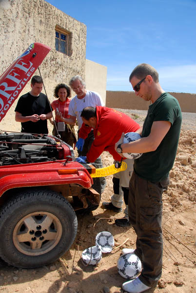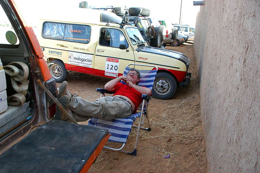 Al haber terminado la etapa bastante pronto, fueron muchos los participantes que se dieron un baño en la imponente piscina del hotel, muchos otros decidieron pasear por Erfoud y no pocos, se tuvieron que dedicar a las labores de “bricolaje” que sus vehículos les exigían, bien en el mismo parking del hotel, bien en alguno de los mecánicos de Erfoud, que ese día tuvieron faena.
