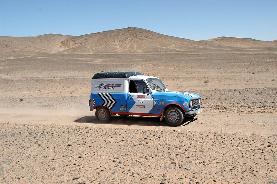 Pistas rápidas en medio de grandes llanuras y tramos de pistas en muy mal estado donde algunos turismo lo pasaron realmente mal, terminaron llevando a la caravana, a través de la pista que pasa por la Lápida Citroen hasta las inmediaciones de Erfoud, donde en las afueras de la ciudad se llegaría al Hotel El Ati.