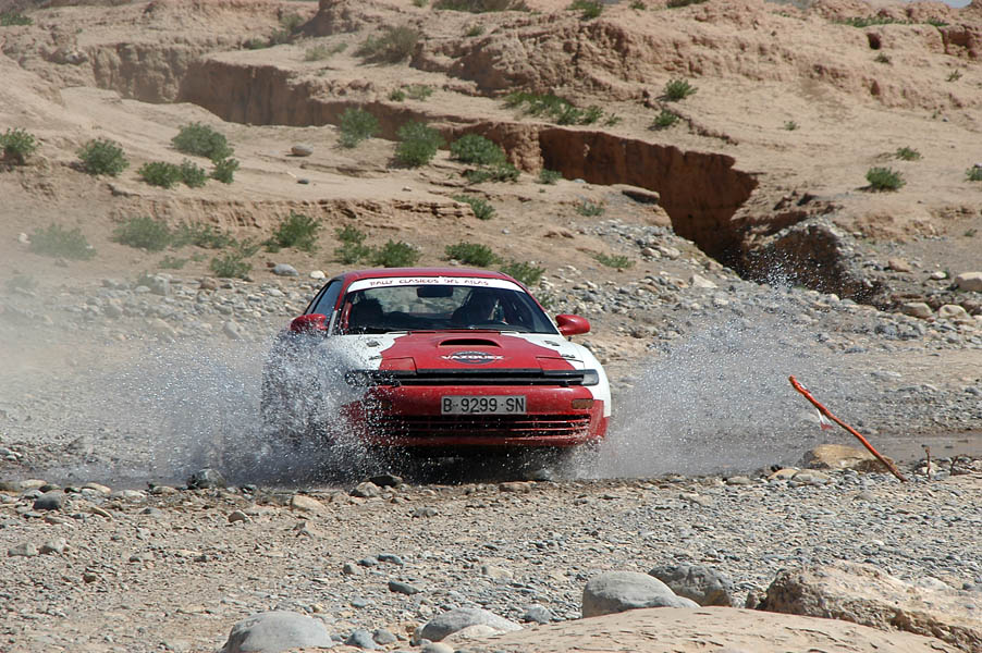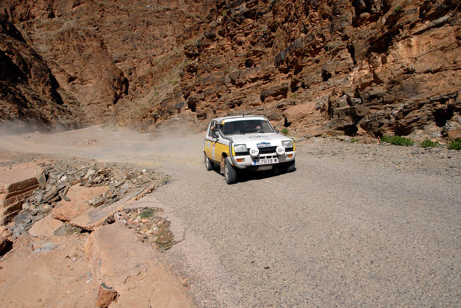 La sexta etapa a realizar el viernes 6 ya dejaba respirar en el ambiente la sensación de que el rally se acababa, los casi 300 Km. que los participantes tenían que realizar, ya les llevarían en dirección norte ¡ya estábamos de vuelta!. En esta etapa el tramo de regularidad era muy corto, poco más de 26 Km. aunque eso sí, atravesando un terreno muy duro que castigaría los ya castigados coches y en medio de una infinidad de cruces que obligaban a estar muy atentos a las indicaciones del rutómetro, pues de lo contrario, la posibilidad de perderse era muy alta. Como guinda del tramo, tras finalizar este y antes de llegar de nuevo a la carretera general, la caravana pasaría por una espectacular garganta con el firme en muy mal estado que recrearía las retinas de todos los participantes.