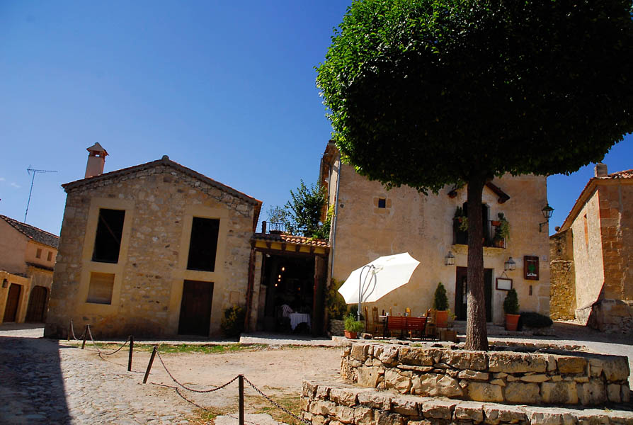 La visita a Pedraza implica necesariamente un completo paseo por sus calles que antes o después nos llevarán a contemplar sus monumentos más destacados, como el castillo, fortaleza construida en el siglo XIII reedificada en el siglo XV, que cuenta con una imponente torre del homenaje, foso, y está rodeado en la mayoría de su perímetro por un acantilado; La antigua cárcel de la villa, situada junto a la puerta de acceso a la localidad; su particular Plaza porticada o la Iglesia de San Juan Bautista, en la que aún se aprecian restos de su particular estilo románico, entre otros destacados monumentos. Pero Pedraza tiene algunos otros encantos más, entre los que destaca la gastronomía y dado que hoy no madrugamos y que el reloj ya marca más allá de las dos de la tarde, decidimos hacer parada técnica en La Posada de Don Mariano, uno de los más destacados restaurantes de Pedraza (si es que es posible destacar en una villa en la que lo peor es muy bueno), donde dimos descanso a los cuerpos, paz a las almas y alegría a los estómagos, y es que el cordero asado, los judiones o el cochinillo, de ser pecado, habrían de llevar al infierno al más noble de los mortales.