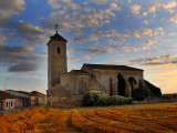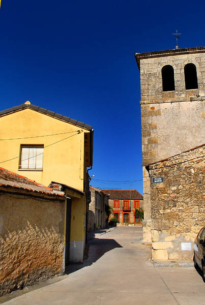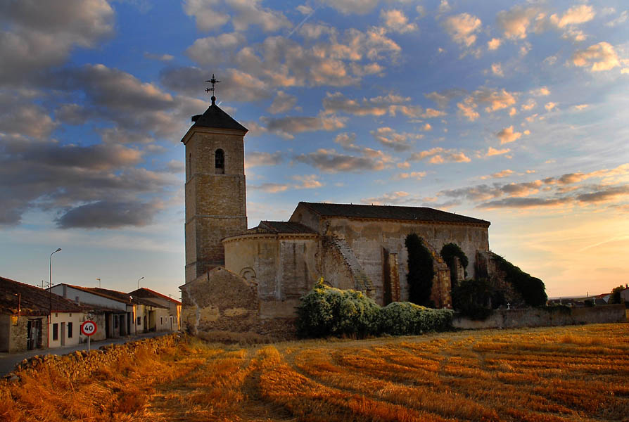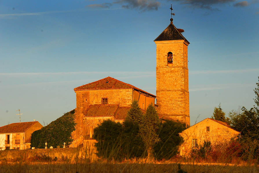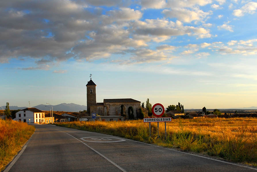 El sol empieza a acercarse a la línea del horizonte y decidimos seguir hasta nuestro último destino de hoy, Torreiglesias, situado en una llanura a unos 1000 mts. sobre el nivel del mar, el dorado del sol sobre sus campos lo hace especialmente atractivo este luminoso día. Desde lejos se aprecia la iglesia parroquial, que data del s. XII. La iglesia disponía de muchas propiedades, de manera especial Capellanías y Obras Pías (hospital…). Eran donaciones que hacían personas pudientes y diversas cofradías. En esta iglesia parroquial de Ntra. Señora de la Asunción, destaca el retablo del altar mayor, de estilo plateresco y que se empezó a construir en el año 1.601. La torre de gran altura de la iglesia actual, se comenzó a construir en el año 1.828 sobre una torre románica que fue demolida. El 3 de agosto de 1.894 fue bendecida después de colocar las campanas. Dentro del término del pueblo, se ha descubierto una cueva, llamada de la Vaquera o Fuentedura, donde aparecen restos e indicios de que allí vivió el hombre de la Edad de Bronce. Un periodo que abarca desde el año 3.700 antes de Cristo, hasta la Edad de Hierro (en torno al siglo II a.C.) En las inmediaciones de esta cueva, se pueden contemplar también tres castros celtíberos. Es casi seguro que estos castros estuvieron habitados por los arevacos.
