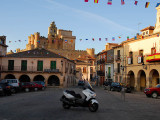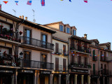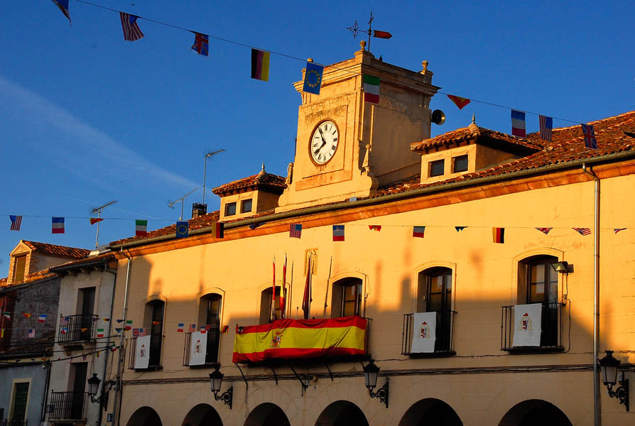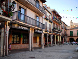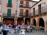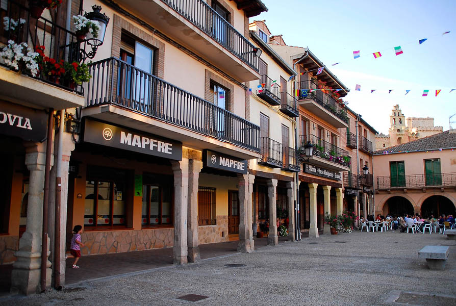 Tras apreciar las primeras vistas de Turégano desde el cerro donde se enclava el castillo, bajamos y penetramos entre sus calles para acercarnos hasta su Plaza Mayor, denominada Plaza de los Cien Postes por tratarse de una plaza porticada cuyos soportales están formados por filas de columnas de madera y piedra que cargan en zapatas y pilares de piedra.