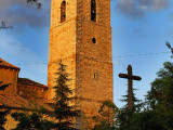 “En el centro del pueblo, dominándole con su maciza torre, se alza la iglesia, cuyo exterior constituye un acabadísimo ejemplar del último periodo románico. Con la habilidad y la paciencia de los antiguos doradores, los siglos y el sol han cubierto a esta iglesia de un bello tinte de oro; con el resaltan más las arcadas de la torre y las delicadas y prolijas labores del pórtico, tantas y tan numerosas. que indican un estilo tan arraigado en la región, que se esforzaba en producir obras cuando ya lo principios de un arte nuevo (el gótico) había ya traspasado fronteras.,,,”