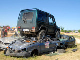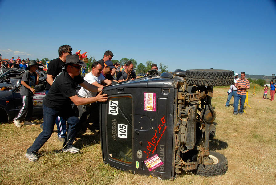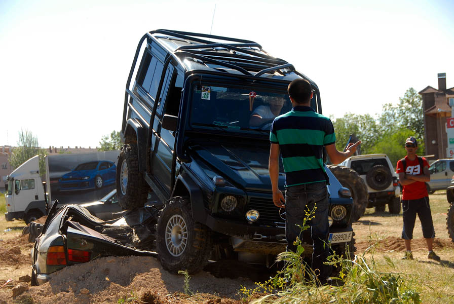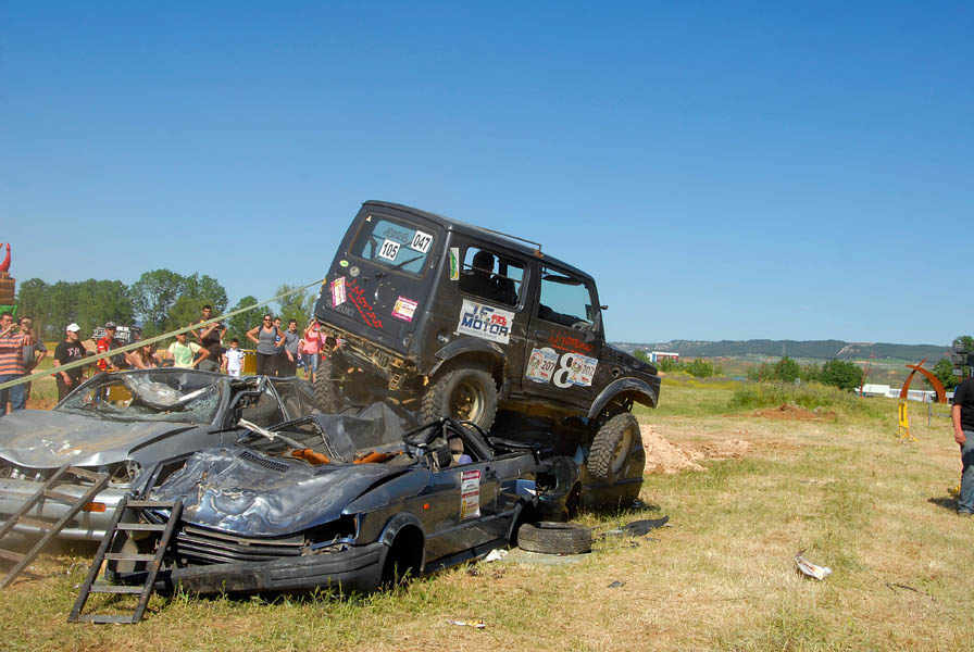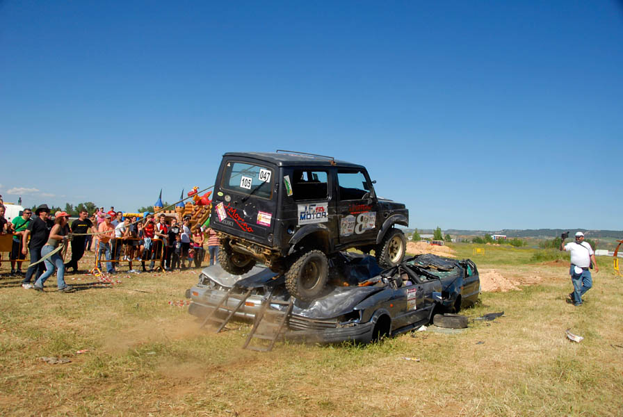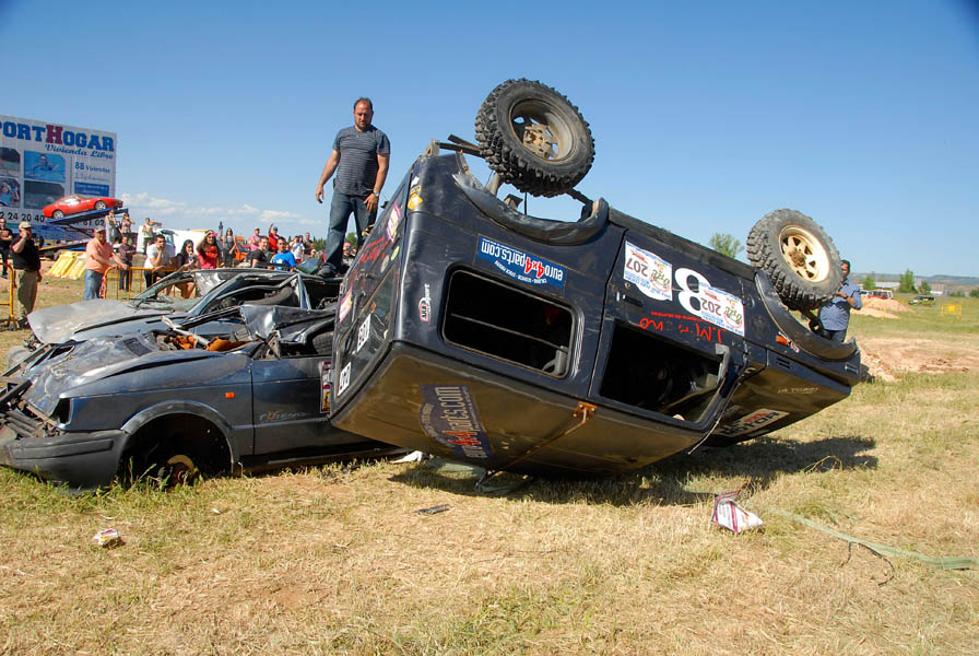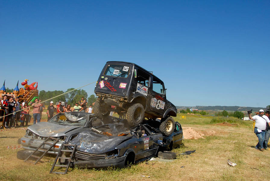 La mañana fue pasando y tras un alto para que todos los asistentes pudiésemos comer algo, por la tarde siguió el espectáculo con una zona en la que había que superar una serie de coches, ya bastante chafados de la jornada anterior, pero que pusieron de nuevo en aprietos a casi todos, llegando a generar algún que otro vuelco incluso.