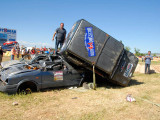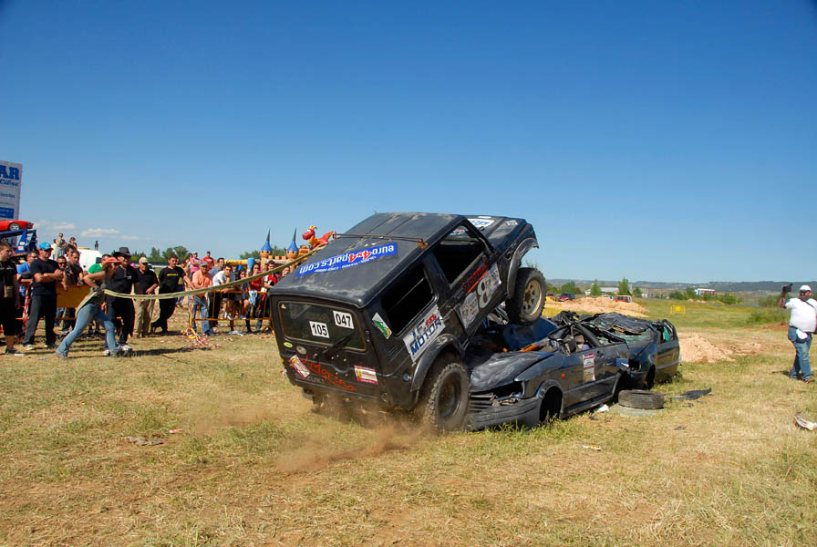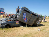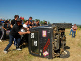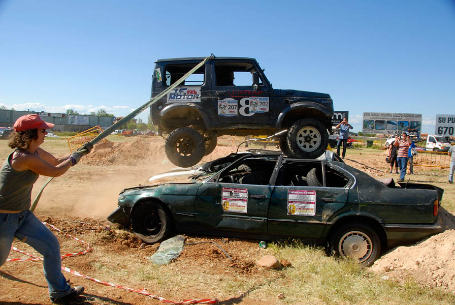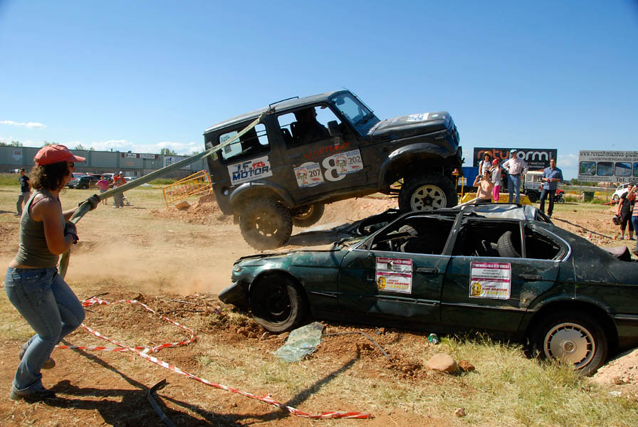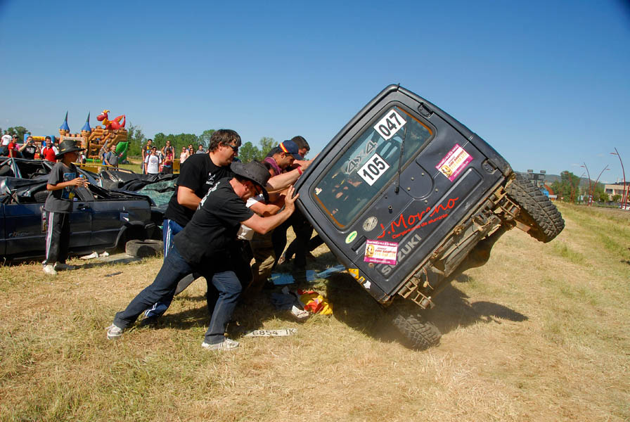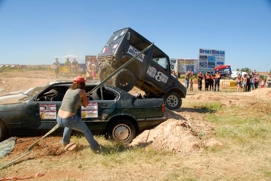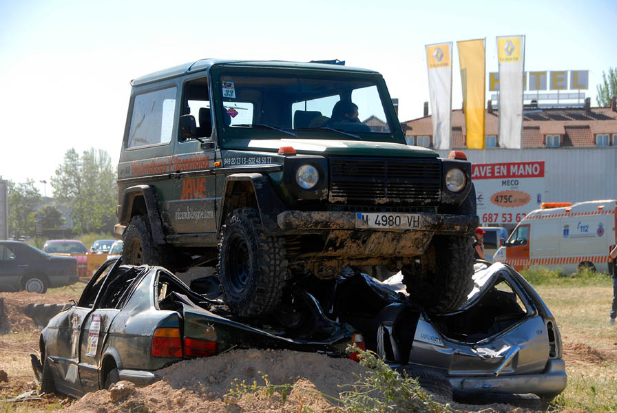 La mañana fue pasando y tras un alto para que todos los asistentes pudiésemos comer algo, por la tarde siguió el espectáculo con una zona en la que había que superar una serie de coches, ya bastante chafados de la jornada anterior, pero que pusieron de nuevo en aprietos a casi todos, llegando a generar algún que otro vuelco incluso.