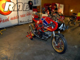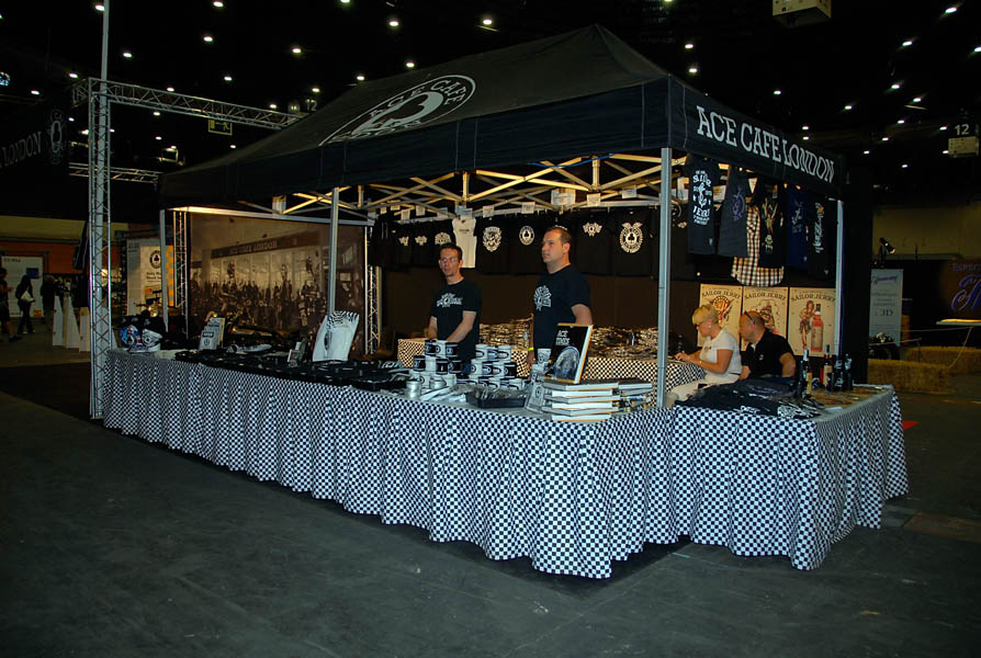 Desde los años treinta, el Ace Café London es la cuna de los apasionados de las motos deportivas de todo el mundo, un café en el que cada día, multitud de aficionados se reúnen para comer, cenar o simplemente tomar unas pintas de cerveza, y en el que cada fin de semana, hay concentración de todo tipo de motos, marcas y estilos. Pues bien, el Ace Café tampoco quiso perderse el Mulafest, y a la entrada del pabellón 12 tenían montado un estupendo “chiringuito” en el que se podía comprar todo tipo de merchandising del mítico café.