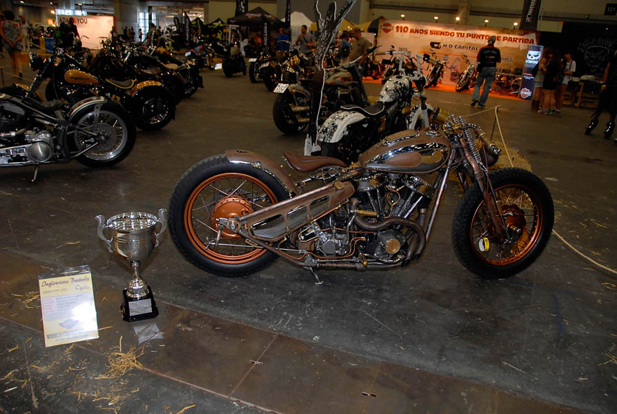 Entrando ya de lleno en nuestra materia, destacar que esta segunda edición de Mulafest ha sido sede de una de las 32 finales del AMD World Championship, el Campeonato del Mundo de Constructores de Motos, un evento nunca celebrado en Madrid hasta la fecha y que nos permitió ver algunas de las mejores creaciones internacionales. Estilos como las Café Racer, Chopper, Brad Style, Bagger, Bobber, Rat, o Street Fighter desfilaron ante la vista de los asistentes mostrándonos los más impresionantes diseños y decoraciones.