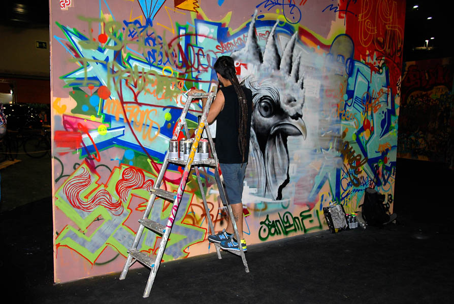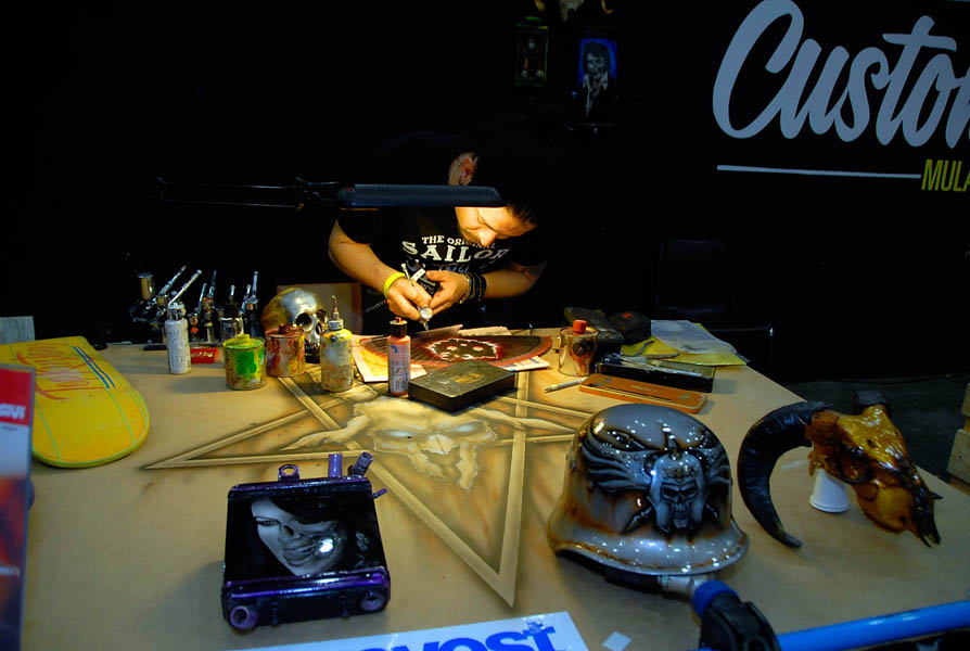 Como no podía ser de otra forma, a lo largo de todo el fin de semana algunos de los mejores artistas tanto del panorama nacional como extranjero, mostraban en directo todo el proceso de diseño y pintado de skates, bicis, cascos y motos.