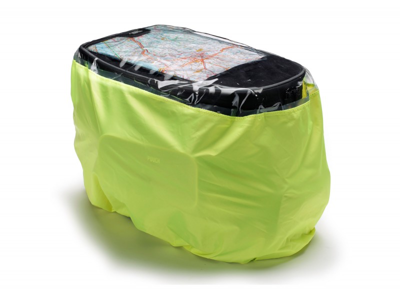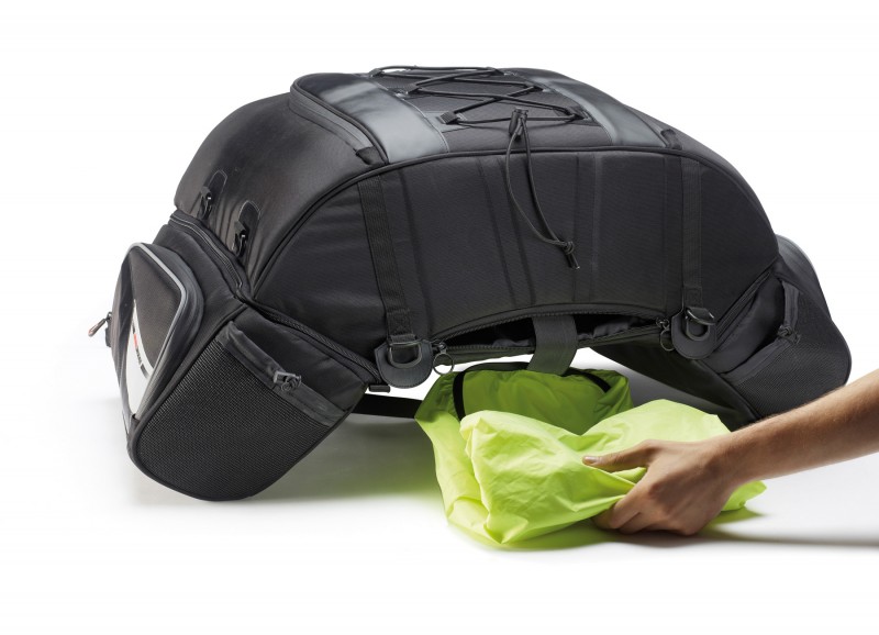 Su fabricación en nylon y poliuretano garantizan una larga vida útil, y una total impermeabilidad y estabilidad de carga. Esta bolsa incorpora una exclusiva funda impermeable fluorescente, así como inserciones reflectantes para incrementar la visibilidad de la moto en condiciones de poca luz. Está disponible por 185 € (IVA incluido).