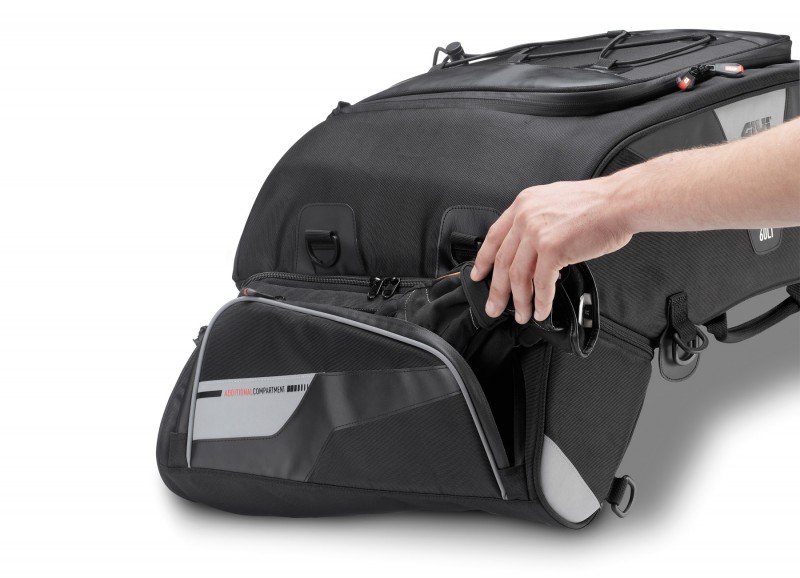 Por otra parte, GIVI ha creado una bolsa de sillín con una capacidad de 60 litros: la XS305. Esta nueva bolsa permite al motorista cargar grandes equipajes, herramientas y todo tipo de artículos necesarios en la carretera. Cuenta con algunas características que facilitan la vida al piloto como el fácil acceso a su interior, pudiendo extraer lo que se necesite del equipaje en cualquier momento con total comodidad y la facilidad de trasladar la bolsa colgada del hombro, una vez bajado de la moto, gracias a su correa de transporte. Además, puede equiparse indistintamente en cualquier tipo de moto de forma fácil y rápida, al no depender de anclajes específicos: su instalación se realiza por medio de correas ajustables.