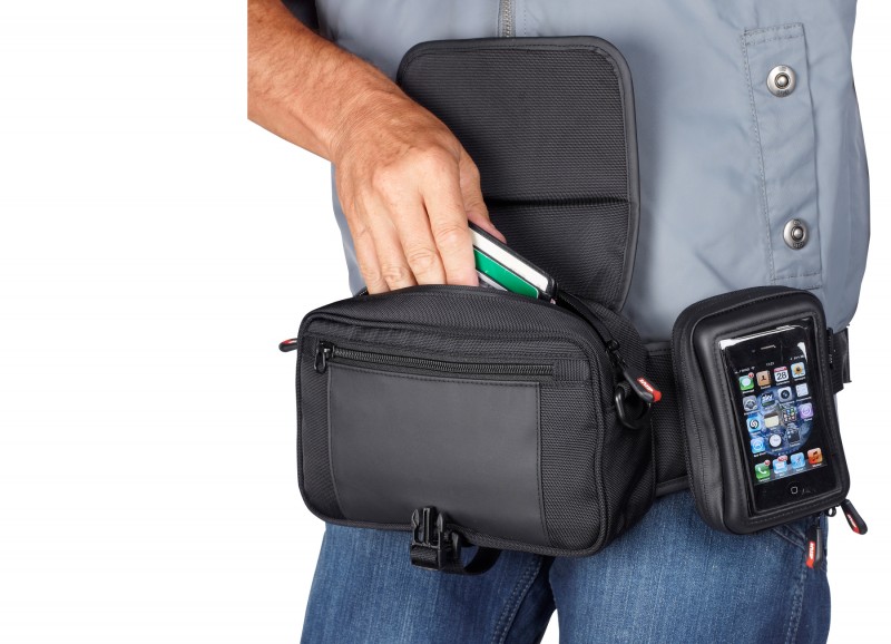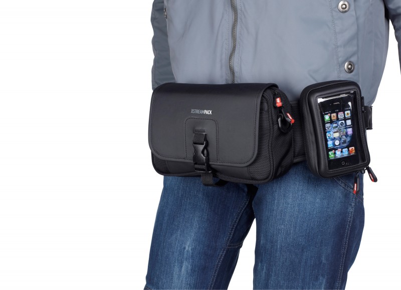 La riñonera XS309 es la bolsa más pequeña de la colección. Es ideal para cargar con pequeños objetos de forma segura y cómoda una vez aparcada la moto. Incorpora una cremallera impermeable, bolsillos internos, una correa ajustable para la cintura, y un porta Smartphone extraíble. Se comercializa a un precio de 47 € (IVA incluido).