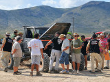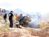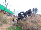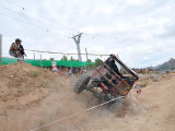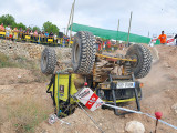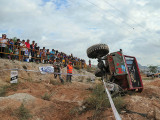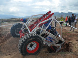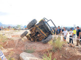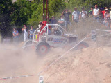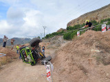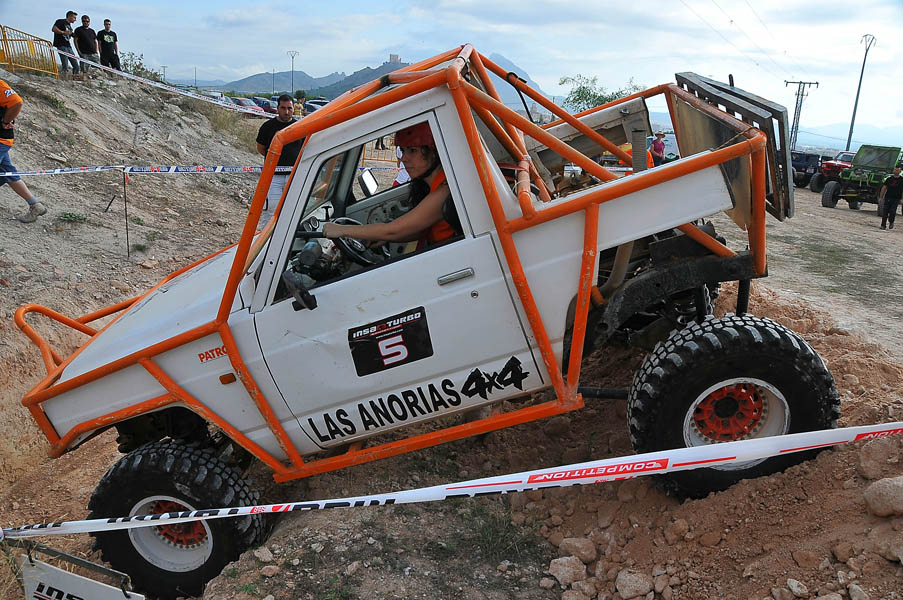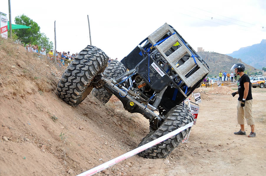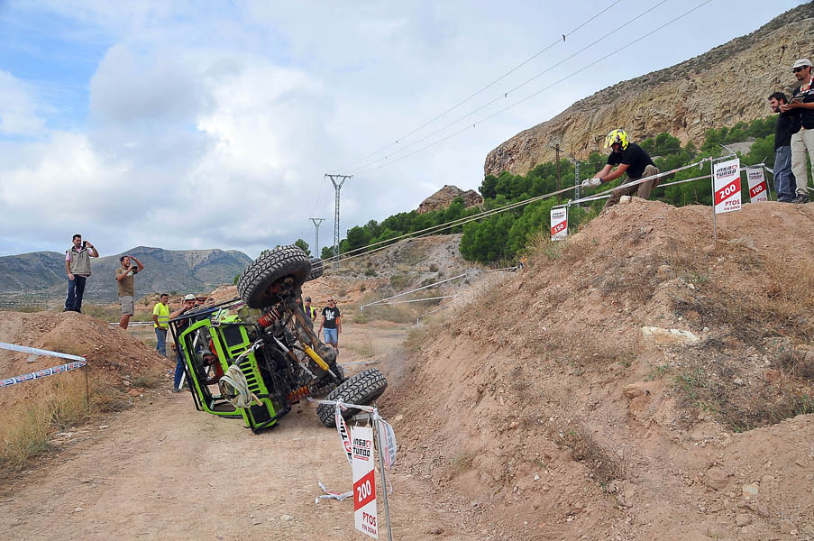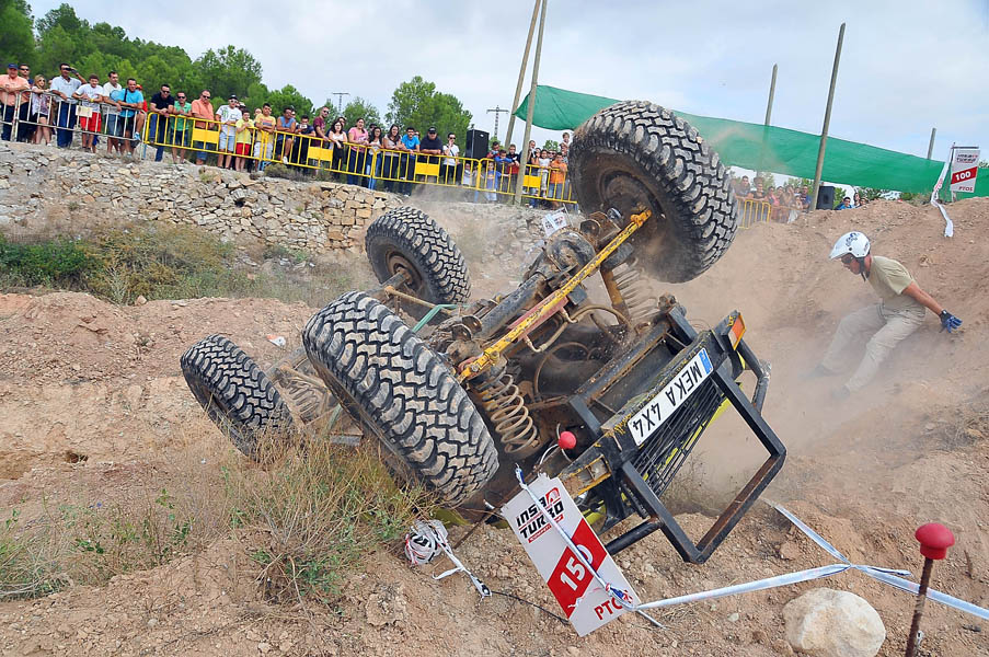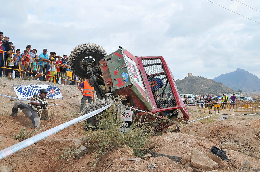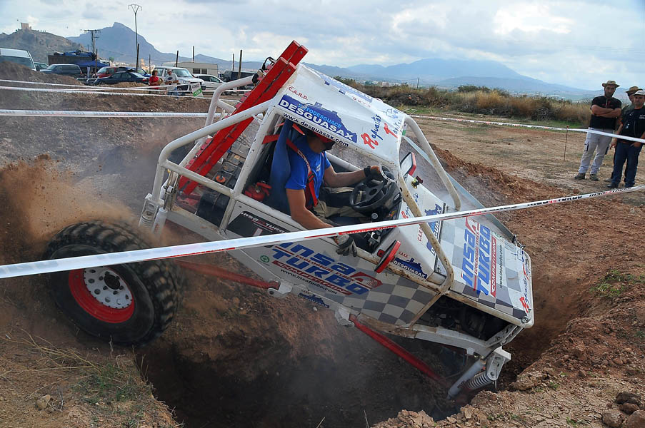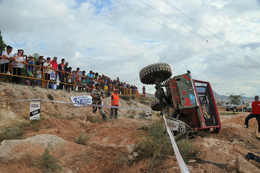 Tanta emoción merecía una organización de lujo, y esta fue la que nos ofreció el Club Ocio y Aventura Jumilla, un club formado hace ya 12 años y que cuenta con 30 socios amantes de todo lo que tenga que ver con la conducción off road, que preparó un circuito técnico, variado y situado de tal manera que el público, colocado en una especie de anfiteatro elevado, podía ver la totalidad de las zonas, lo que motivó que todo aquel que venía, no se fuese en toda la mañana, enganchado por el espectáculo que los continuos vuelcos y posiciones extremas que llegaban a alcanzar los coches, les ofrecía.
