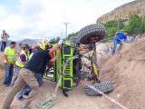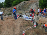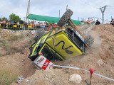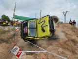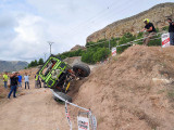 Pero la palabra emoción quiso ser la protagonista del día, cuando, tras un rato de descanso les toca la zona 3 a Andrés Martínez y Pedro García, compuesta de unos giros pronunciados sobre zanjas y con la puerta de 200 puntos a la vista, el coche da un giro y vuelca sobre el lateral… maniobran varias veces para intentar devolverlo a su posición pero no hay manera y deciden parar para no romper el motor. Han conseguido 150 puntos menos las penalizaciones y a estas alturas, ya nadie sabe quién va delante, aunque todos lo tienen claro, el que lo esté, lo está por muy poco.