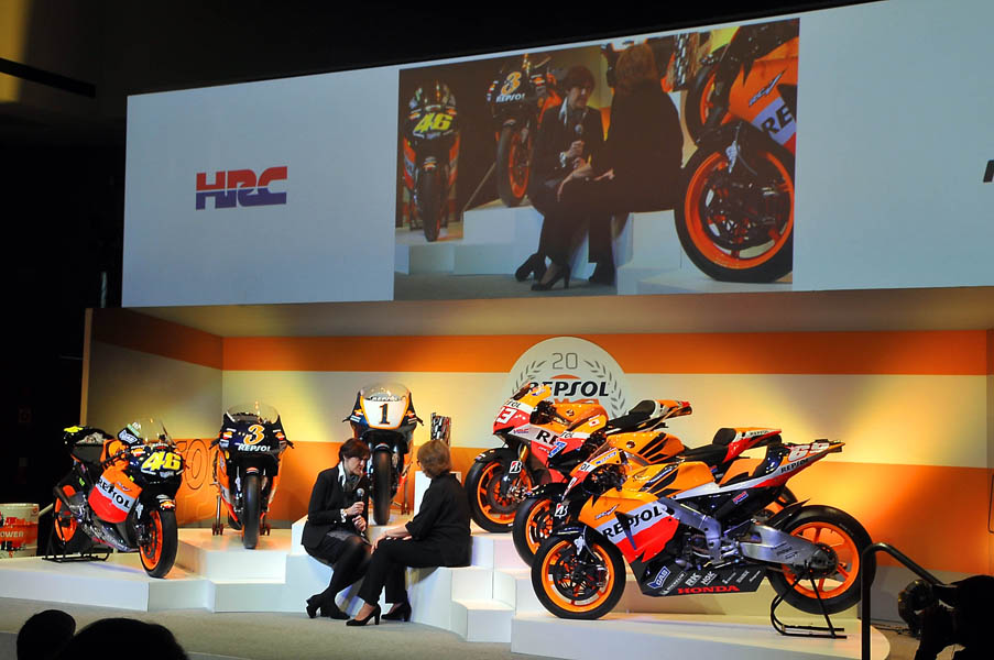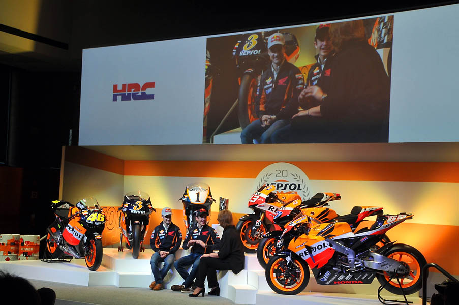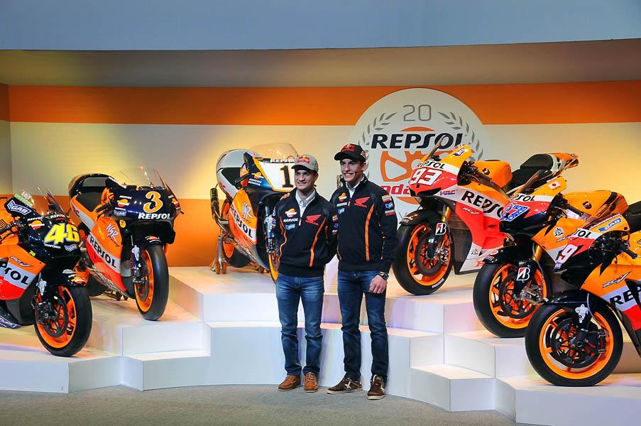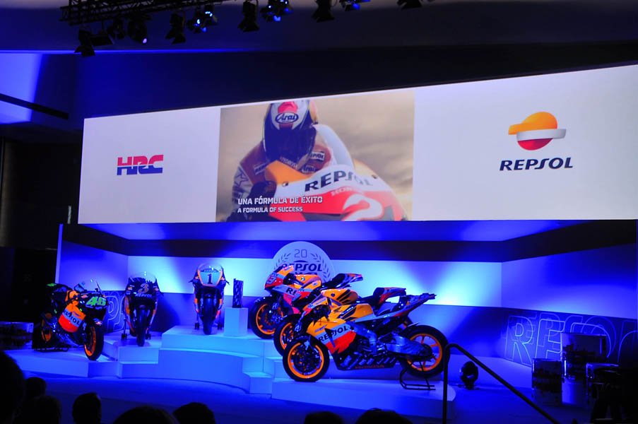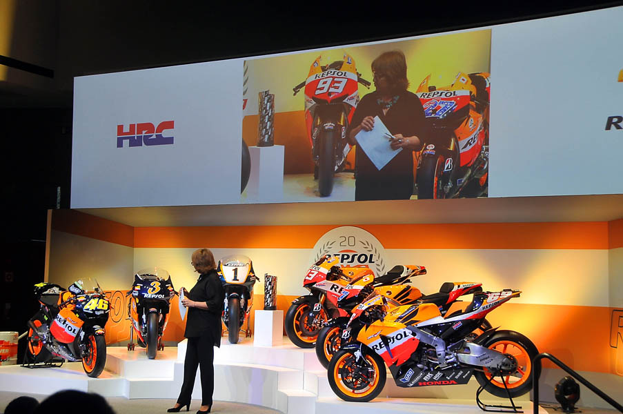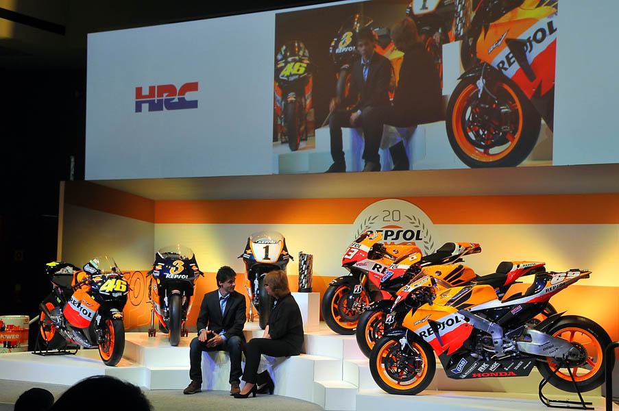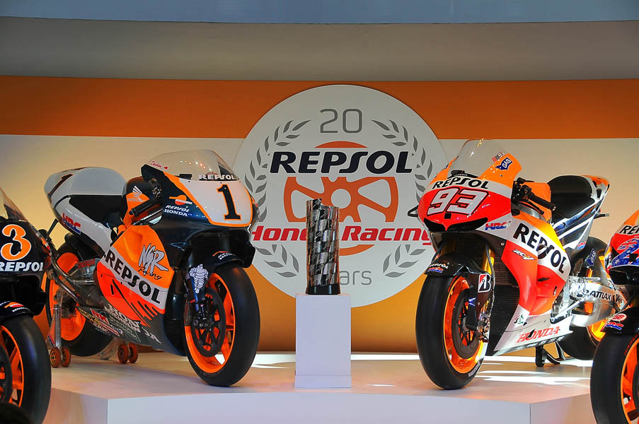 El Campus Repsol de Madrid, fue el lugar donde seis de las motos campeonas en estas dos décadas de intensa colaboración entre Repsol y Honda: las de Mick Doohan (1995, 1996,1997 y 1998), Àlex Crivillé (1999), Valentino Rossi (2002 y 2003), Nicky Hayden (2006), Casey Stoner (2011) y Marc Márquez (2013), presidieron un escenario en el que se hizo un repaso a un palmarés envidiable, ya que la mitad de los títulos adjudicados en los últimos 20 años llevan el sello del equipo Repsol Honda.