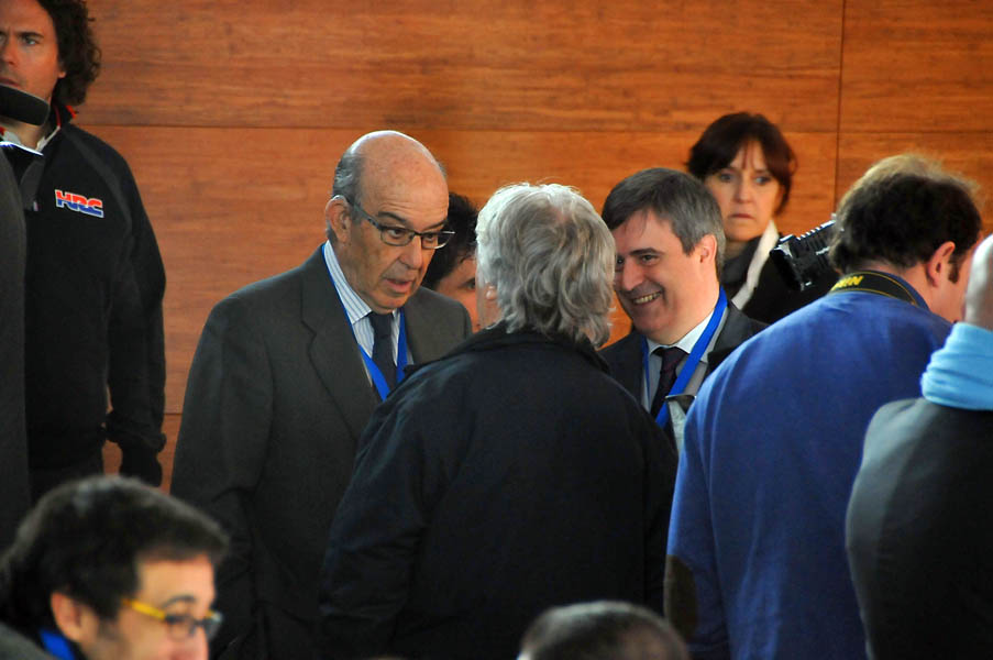 Tanto Marc como Dani, ante la pregunta tan de actualidad, sobre el acuerdo que Dorna, Telefónica y Mediaset han llegado para que la mitad de las carreras del Mundial de MotoGP de este año 2014 se emitan bajo la plataforma de pago de Movistar TV, se mostraron extremadamente prudentes y se limitaron a decir que para ellos siempre es mejor que les pueda ver el mayor público posible. Tirando balones fuera, tanto Dani “no depende de nosotros”, como Marc, que tras su mensaje en Tweeter: “Espectáculo gratis para toda la afición”, se mostró mucho más comedido en sus declaraciones, evidenciaban que habían sido “advertidos” en el caso de Dani, como “amonestados” en el de Marc, para que moderasen sus declaraciones.