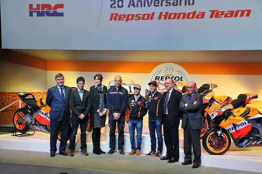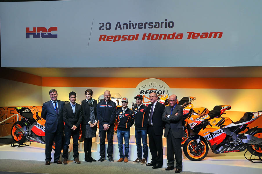 En la celebración, Marc Márquez y Dani Pedrosa, compartieron protagonismo con Alex Crivillé, uno de los referentes históricos del equipo. También participaron en el evento el Presidente Ejecutivo de Repsol, Antonio Brufau, la Directora General de Comunicación y de Presidencia de Repsol, Begoña Elices, y el Team Principal del equipo Repsol Honda, Livio Suppo, en presencia de autoridades como el Presidente del Consejo Superior de Deportes, Miguel Cardenal, el Consejero Delegado de Dorna, Carmelo Ezpeleta, y el Presidente de la Real Federación Motociclista Española, Ángel Viladoms.