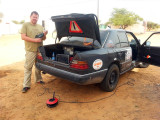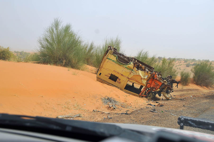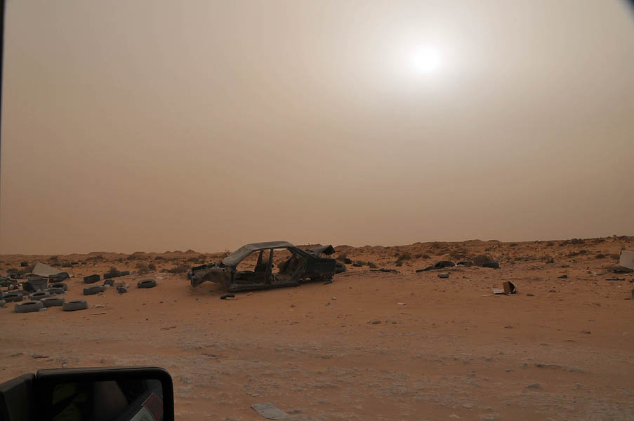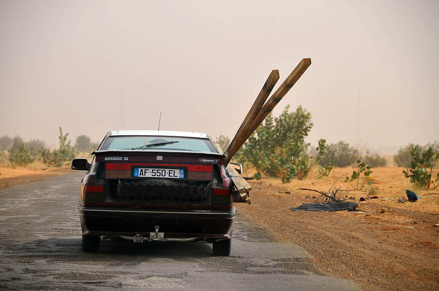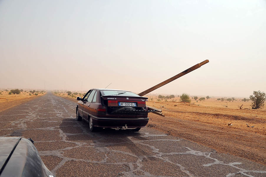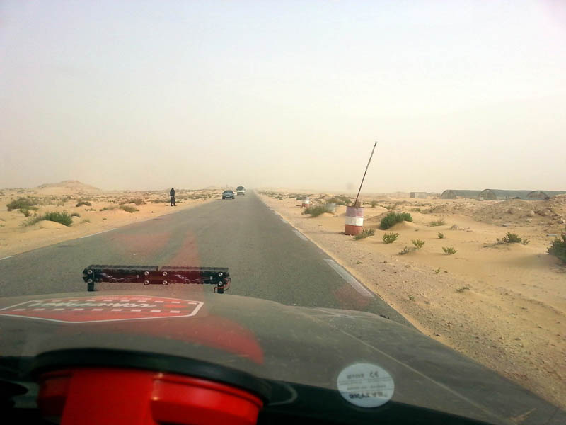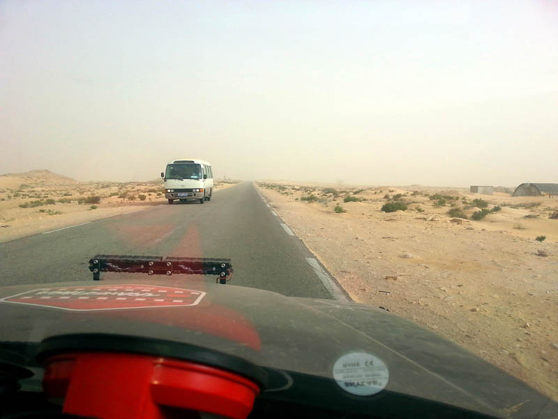 La conducción nocturna es también “interesante” en las carreteras mauritanas, más allá de que todo el mundo lleve los faros mal regulados, es que no quitan las largas por muchas ráfagas que les des… salvo que lleves a mano el “botón del pánico”, nombre con que bautizamos el interruptor que encendía la barra de leds de RSK Producción y que me imagino que hace sentir a los que vienen de frente que están en medio de “Encuentros en la tercera fase”, porque era darlas y los coches que venían de frente quitaban las largas, las cortas, las medias y lo que hiciese falta… es igual que la circulación de día… la ley del más fuerte, y en cuestión de luces, no hubo nadie que nos ganase a lo largo del viaje.