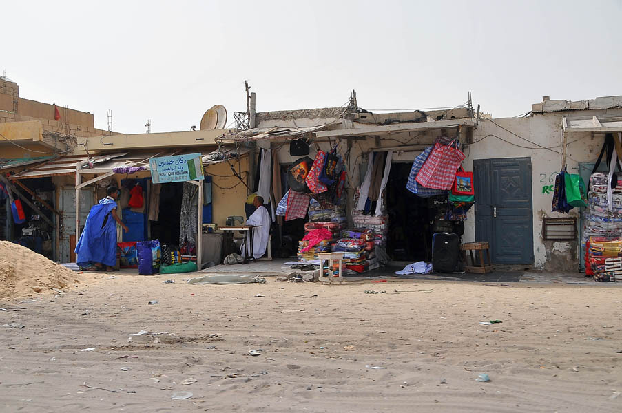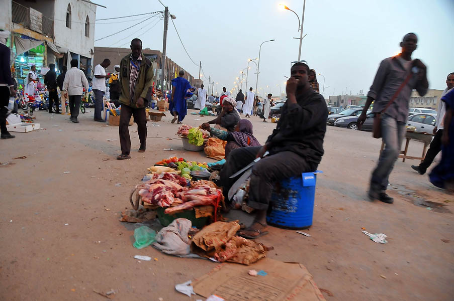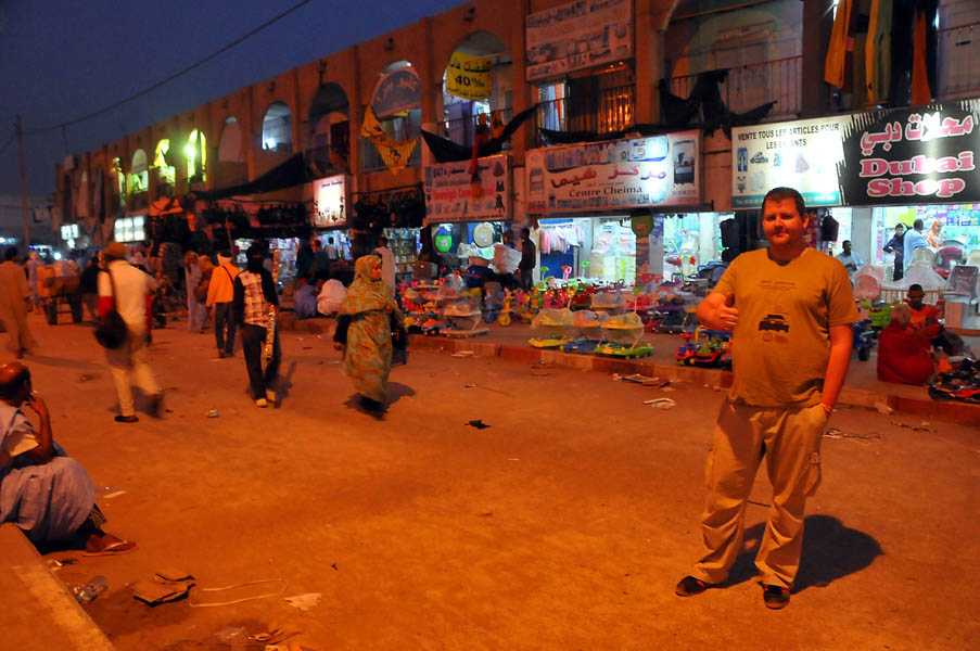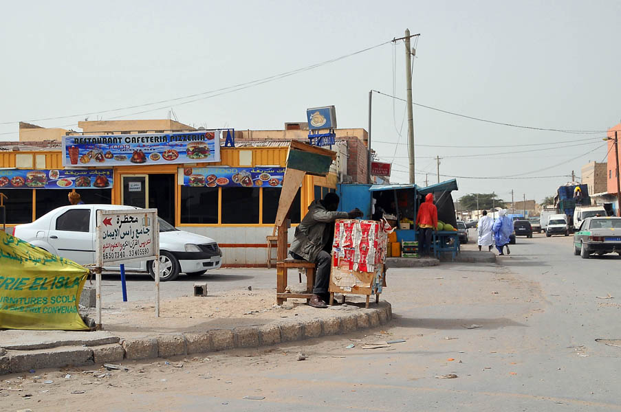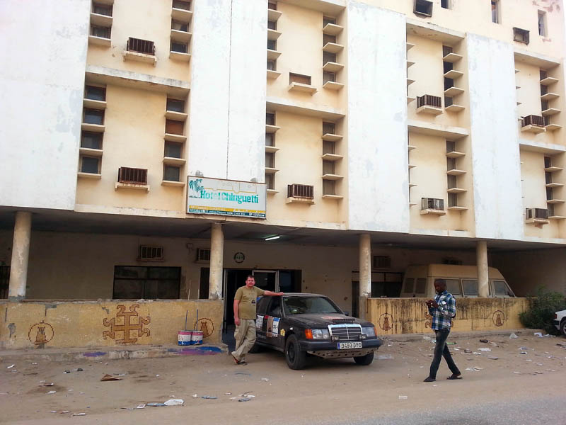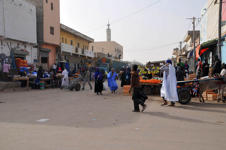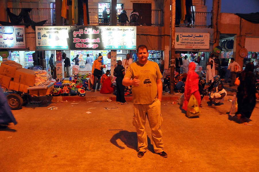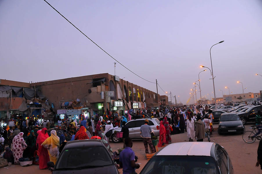 Nuestras esperanzas caen en saco roto al llegar a una ciudad caótica, con las mismas condiciones higiénicas que nos encontramos en Noadhibou, pero mucho más grande. Tras encontrar habitación en el hotel Chinguetti, un cutre hotel cuyo esplendor habría que buscarlo en décadas anteriores a la de los setenta del pasado siglo y cuyo estado de limpieza, mantenimiento y conservación es nulo, pero que eso sí, nos cobraron barato, nos fuimos a dar una vuelta por los mercados y encontramos un paisano que nos llevó a un restaurante realmente decente donde cenamos muy bien, tras lo que nos fuimos a dormir sobre los camastros y dentro de nuestros sacos.
