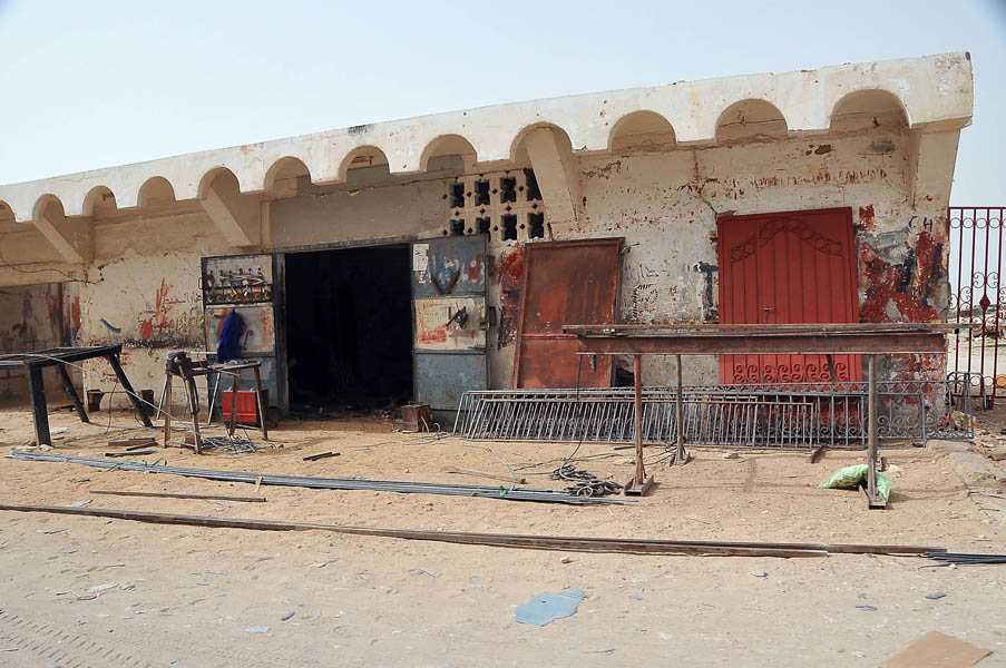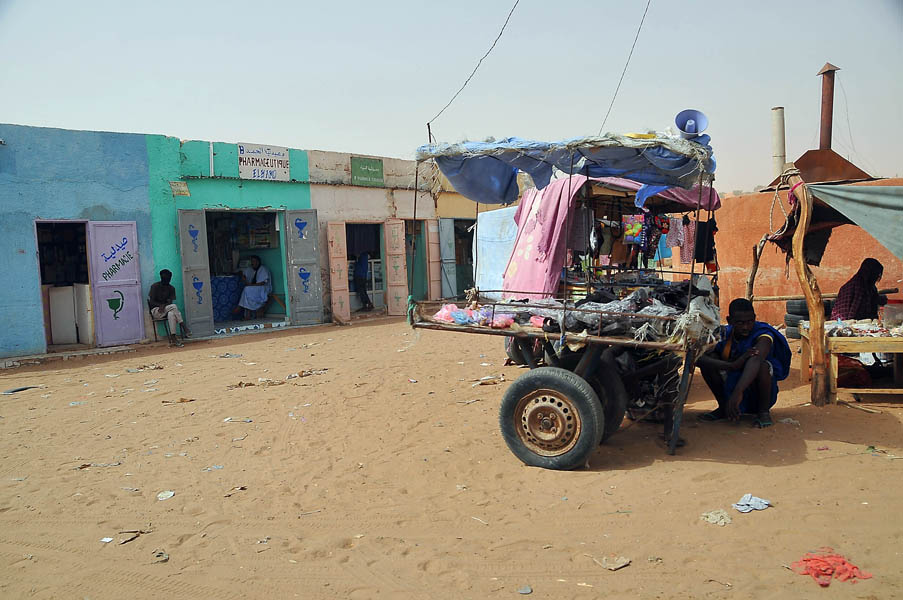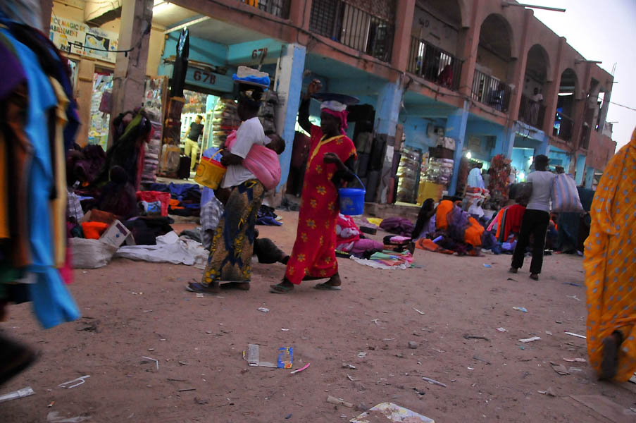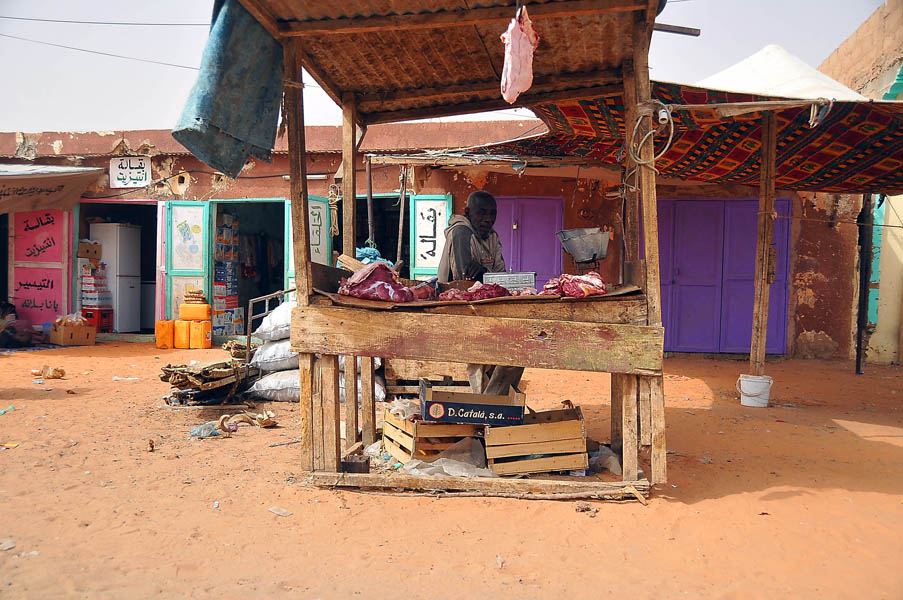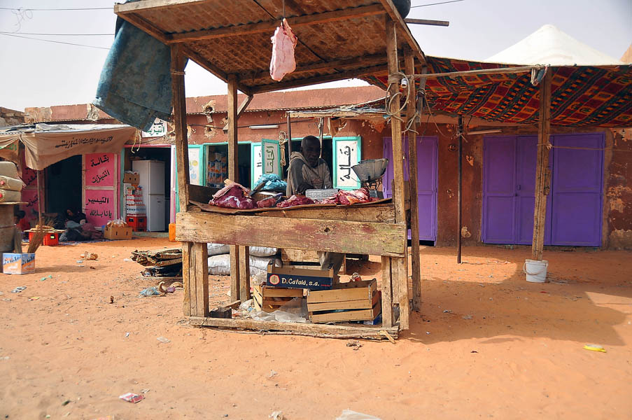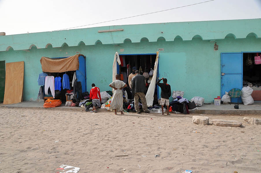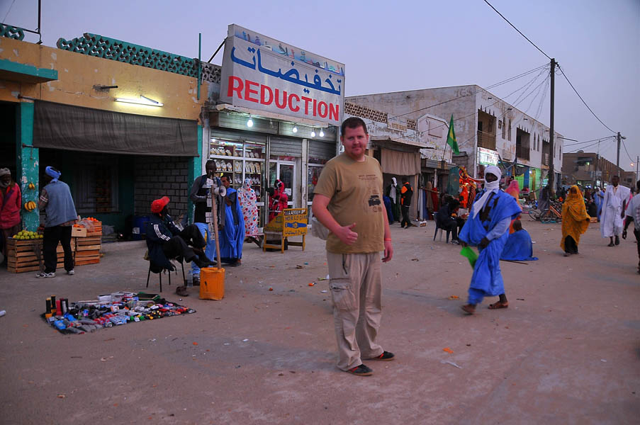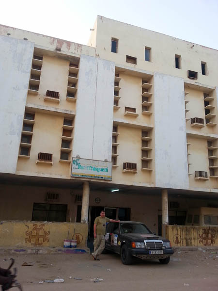Nuestras esperanzas caen en saco roto al llegar a una ciudad caótica, con las mismas condiciones higiénicas que nos encontramos en Noadhibou, pero mucho más grande. Tras encontrar habitación en el hotel Chinguetti, un cutre hotel cuyo esplendor habría que buscarlo en décadas anteriores a la de los setenta del pasado siglo y cuyo estado de limpieza, mantenimiento y conservación es nulo, pero que eso sí, nos cobraron barato, nos fuimos a dar una vuelta por los mercados y encontramos un paisano que nos llevó a un restaurante realmente decente donde cenamos muy bien, tras lo que nos fuimos a dormir sobre los camastros y dentro de nuestros sacos.