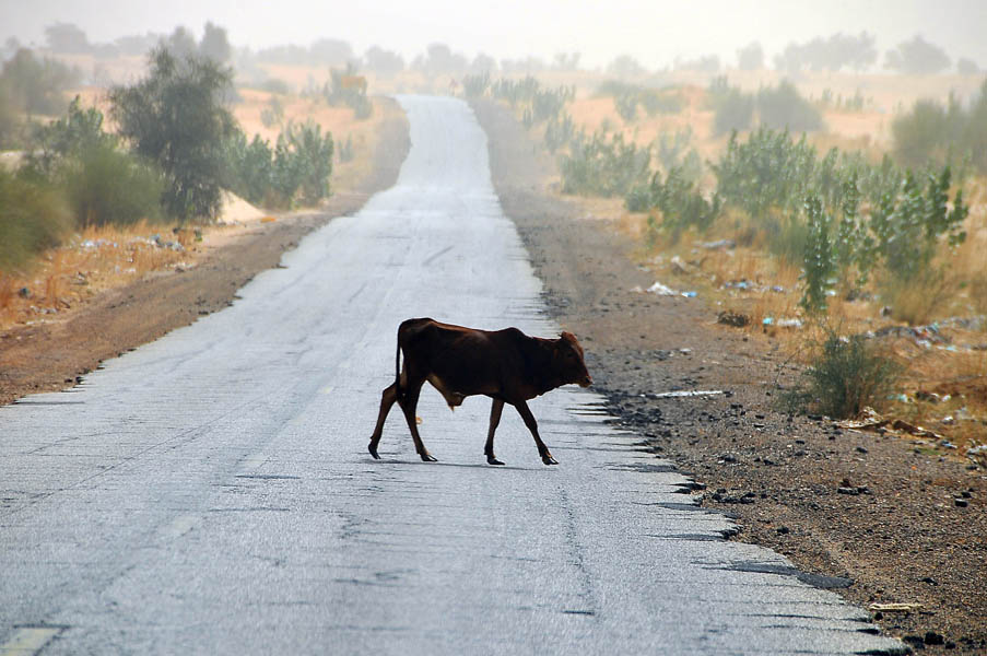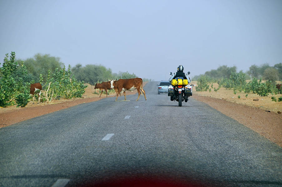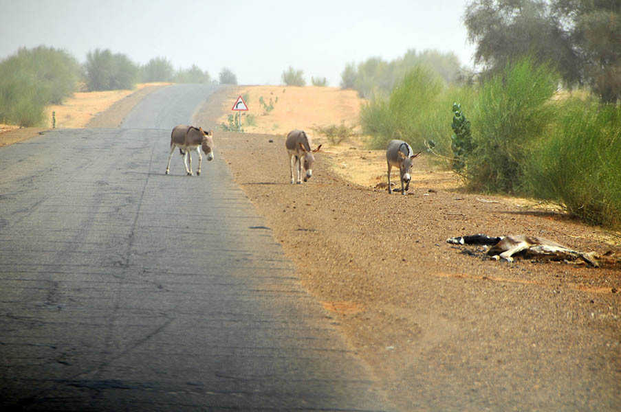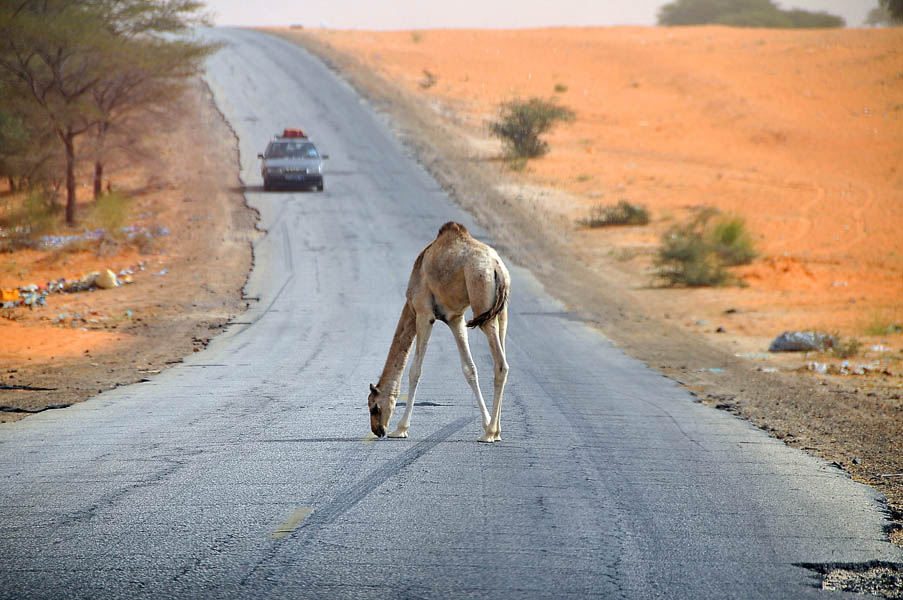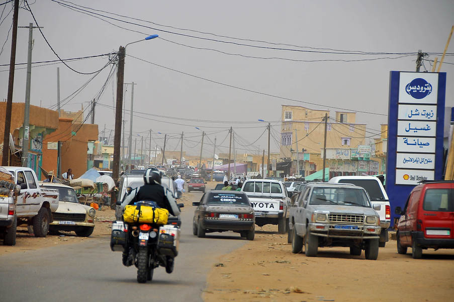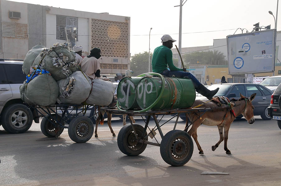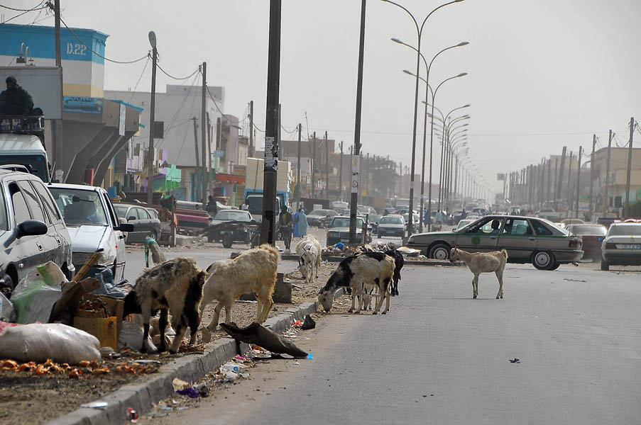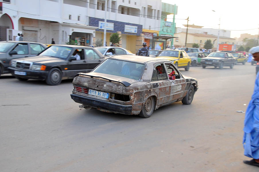 Mientras atravesábamos la ciudad pude comprobar que nada había cambiado desde mi visita en el 2010, la basura se sigue acumulando en medio de la calle, las cabras, perros y burros campan por sus respetos comiendo de dichos desperdicios y los mauritanos, siempre agradables, se transforman en seres antisociales, maleducados y descaradamente peligrosos cuando se ponen al volante, no respetando ni una de las normas o señales de trafico ni del simple sentido común, intentado adelantarte por el arcen, no cediendo nunca el paso y cogiendo los carriles en contra dirección según sus necesidades importándoles un pimiento que vengan coches de frente y de manera correcta.
