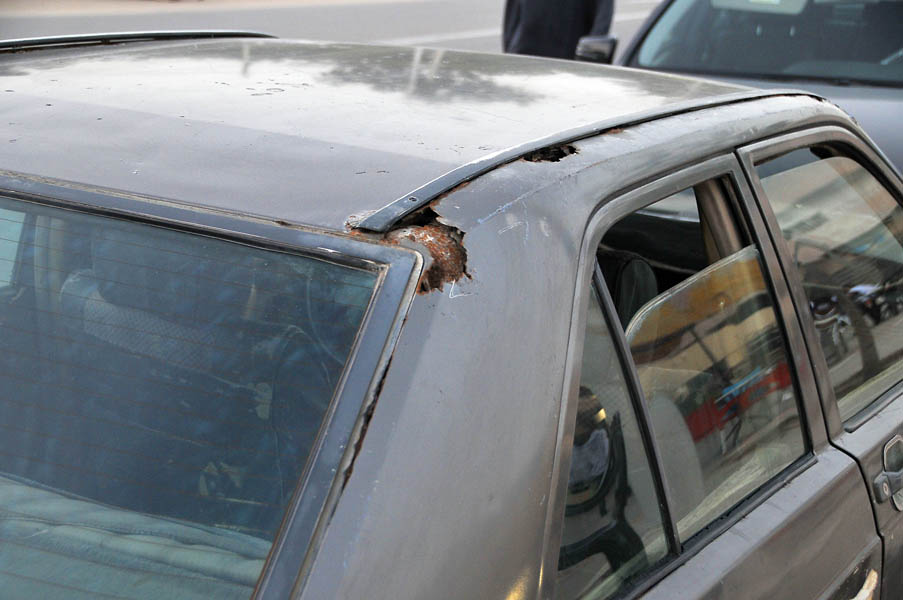 El primero de ellos vendría tras sellar el pasaporte y pasar el control de policía, como ya me ocurriera en 2010, un agente viene al coche y nos hace enseñarle todo… pero todo. Nos hace abrir las cajas que llevamos y al ver la cantidad de cerveza que llevamos nos dice que no pasamos ni de coña. Intentamos convencer al jefe explicándole que es nuestra bebida, que es un viaje muy largo… el nos dice que está prohibido y punto. Se da la vuelta y se va para la caseta, yo le sigo mientras Jesús se queda en el coche controlando y guardando todo lo que habíamos tenido que sacar y me lleva a un cuarto a oscuras, se sienta en una silla y manda llamar a un traductor. Cuando este llega y a través de él, me vuelve a contar lo mismo, yo también, se enfada, sube la voz, manda marchar al traductor… pero el sigue sentado en la silla, en medio de la penumbra.