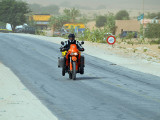 Esteban, conocido como “Kruger”, es un asturiano que está intentando dar la vuelta a África en una KTM Adventure y que como nosotros va en dirección a Aleg y Kiffa, donde nos dice que conoce un hotel donde quedarnos a dormir. Decidimos hacer el camino juntos y paramos a comer en medio de la carretera. Vamos pasando por pequeños poblados en los que la dinámica de gente=suciedad, se repite con matemática precisión. Paramos a tomar un té en uno de ellos, en un “restaurante” pedimos tres tés, esperamos a que los preparen y vemos como se lo sirven solo a Jesús y Esteban; creyendo que no nos habían entendido, nos dicen que sí, que esperemos, creyendo que es que tenían que preparar otra tetera, sin embargo cuando Esteban termina su té y entrega el vaso, directamente sirven más te y me lo ofrecen… no había más vasos.